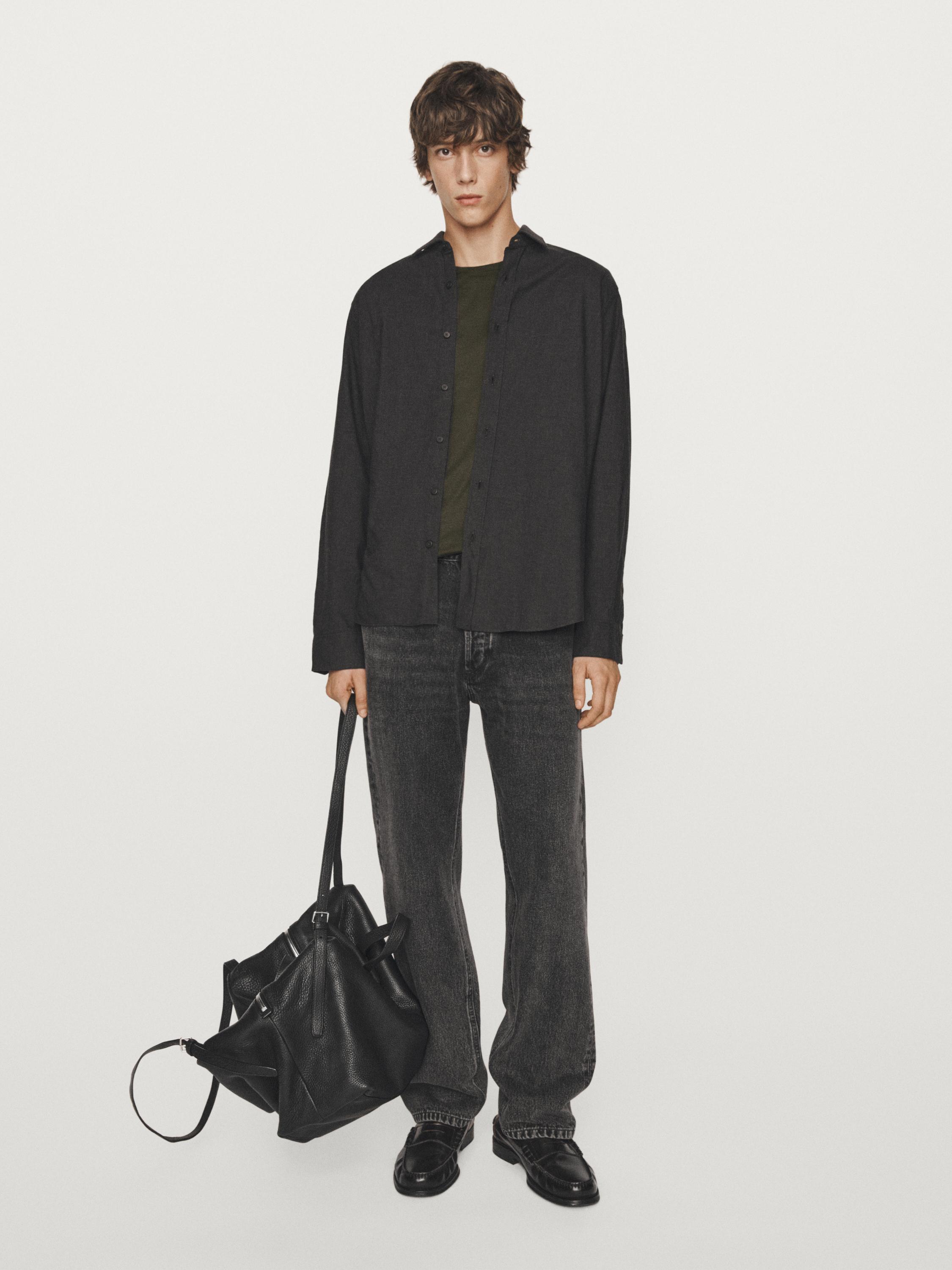 بنطال جينز بقصة ساق مستقيمة: تصميم مستقيم من الخصر إلى الكاحل، بدون أي تعديلات إضافية على الساق. Buttoned front closure. تصميم بخمسة جيوب.