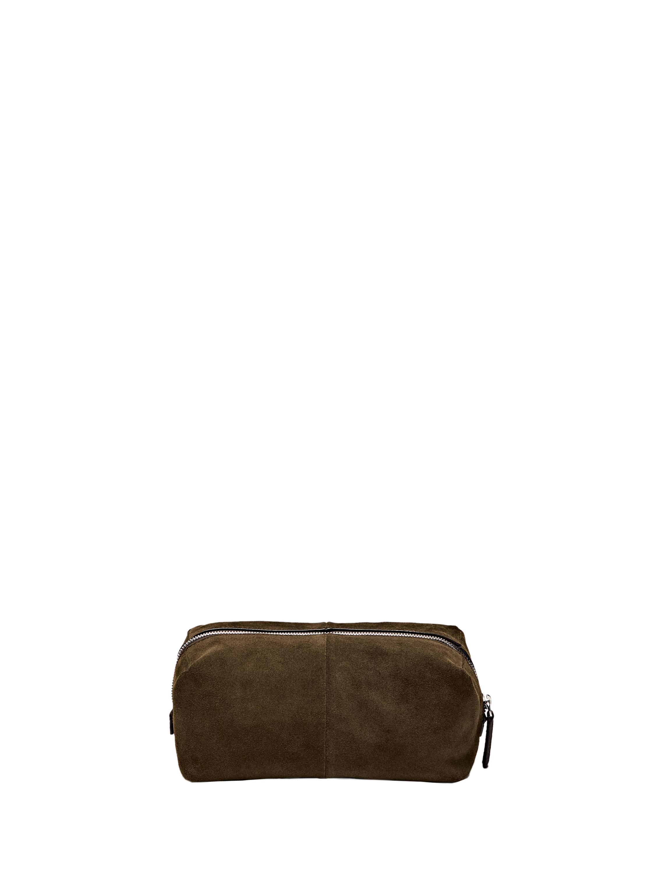 Несессер из коровьей замши. Застежка на молнию. Подкладка из хлопка.