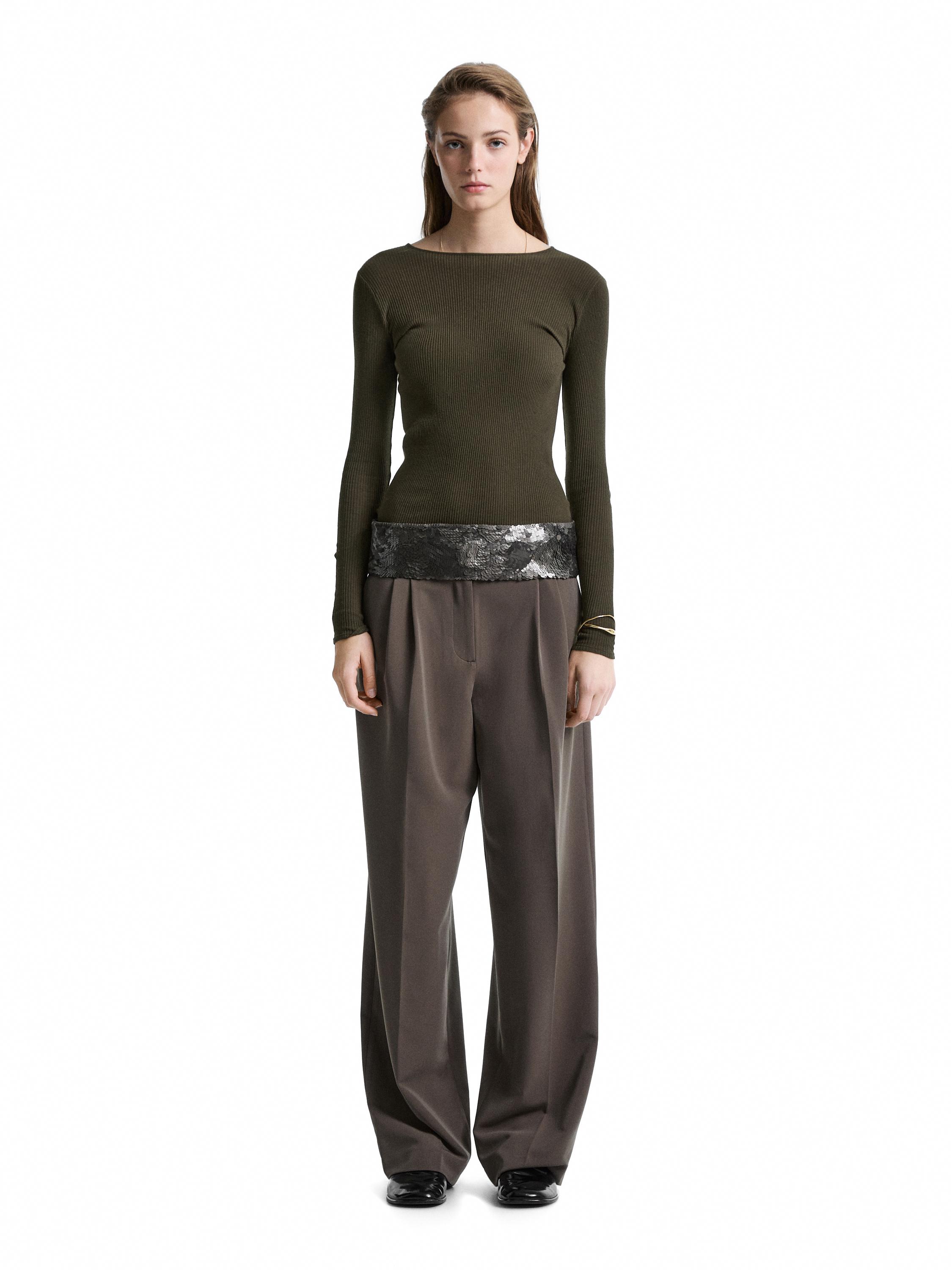 Strick-Shirt aus Gewebe mit Baumwolle. Rundausschnitt. Lange Ärmel. Rippenstrick-Gewebe.