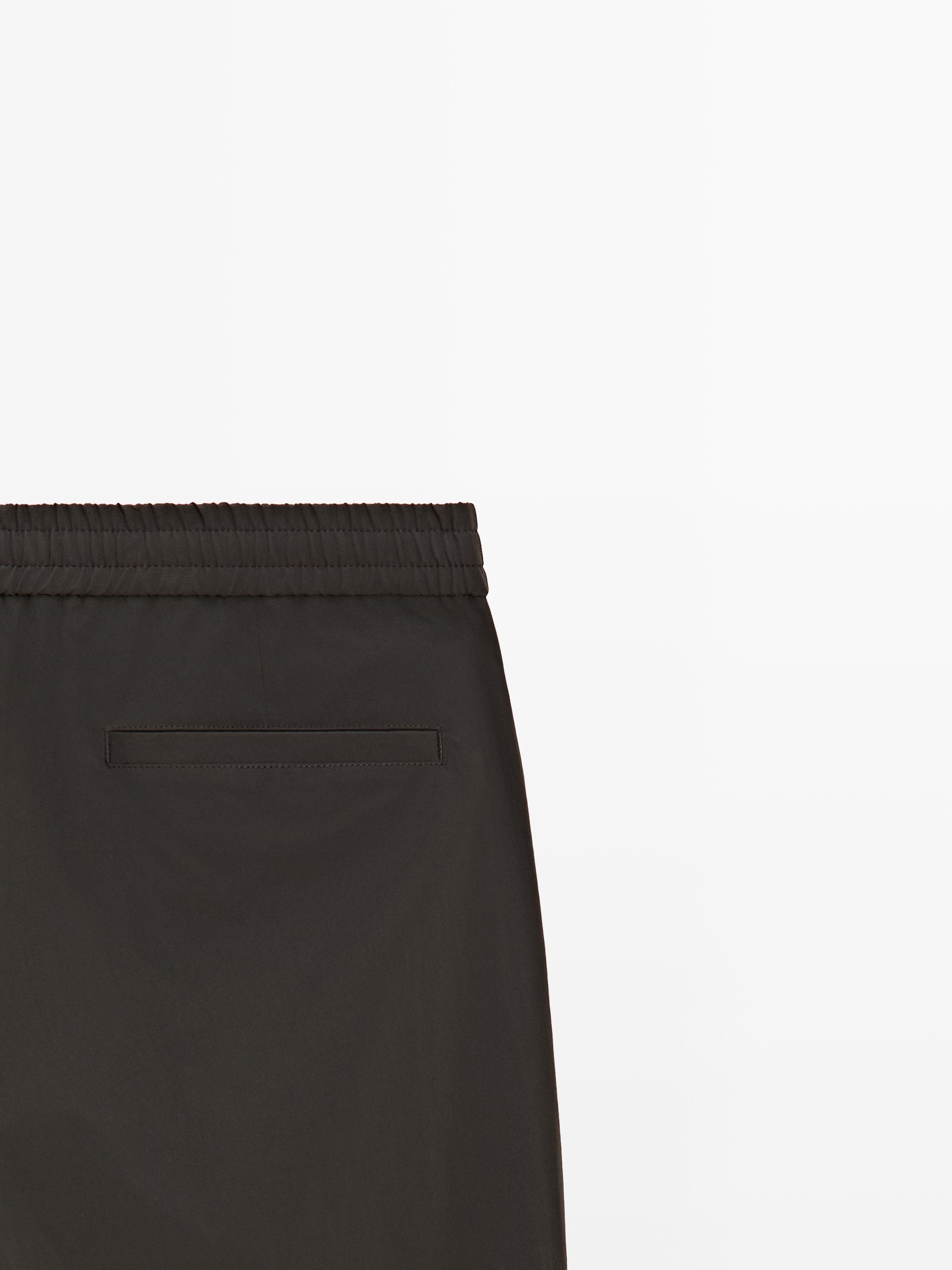 Straight-Fit-Hose aus Funktionsstoff-Gewebe. Gummizugbund-Detail. Zwei Seitentaschen. Eine Leistentasche am Gesäß. Dazu gibt es ein passendes Kleidungsstück.