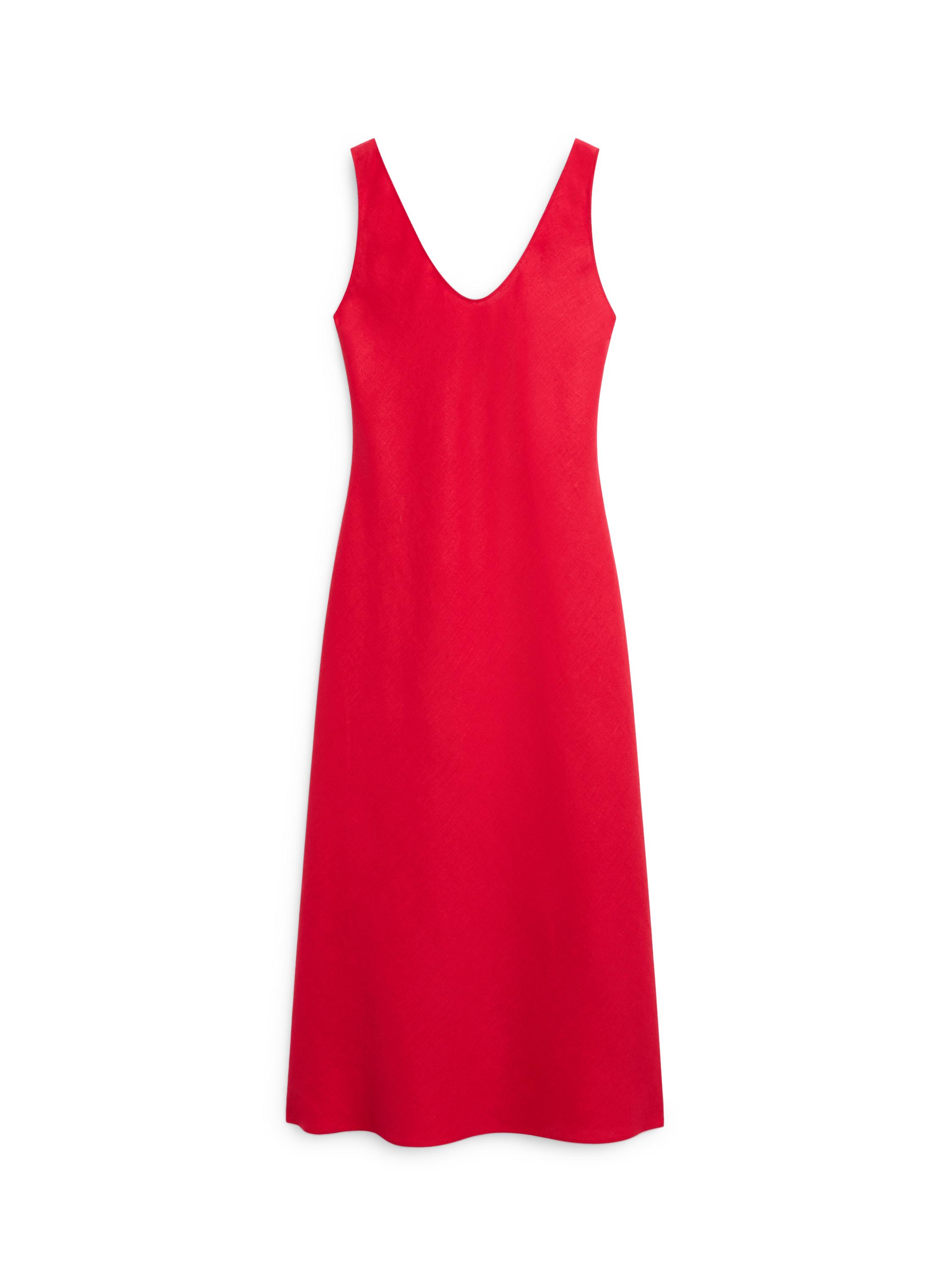 Midikleid aus 100% Leinen-Gewebe . Rundausschnitt. Träger.