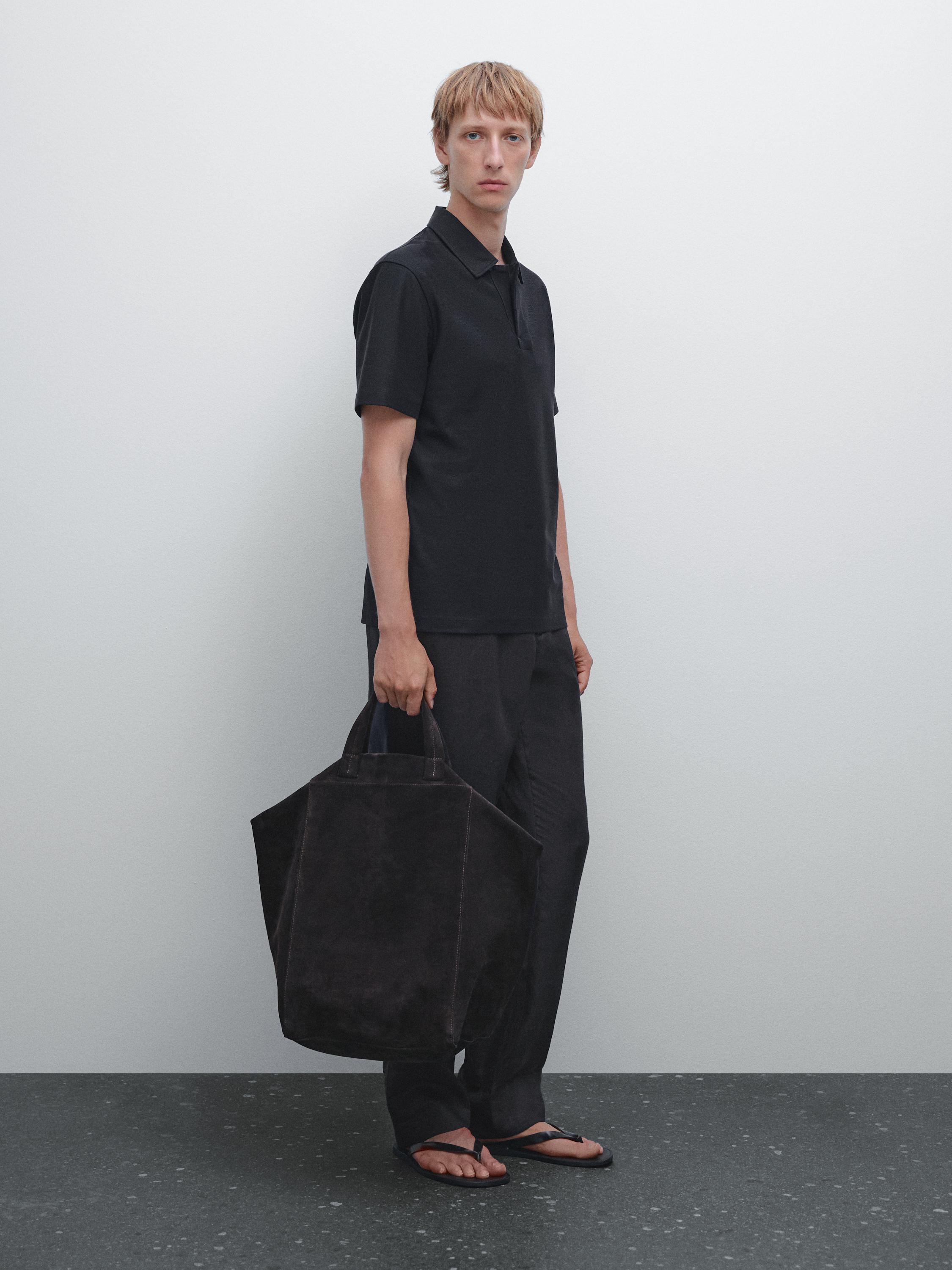 Блуза с якичка, изработена от тъкан с примес на памук . Къс ръкав. Якичка с копчета. Лека текстурирана тъкан .