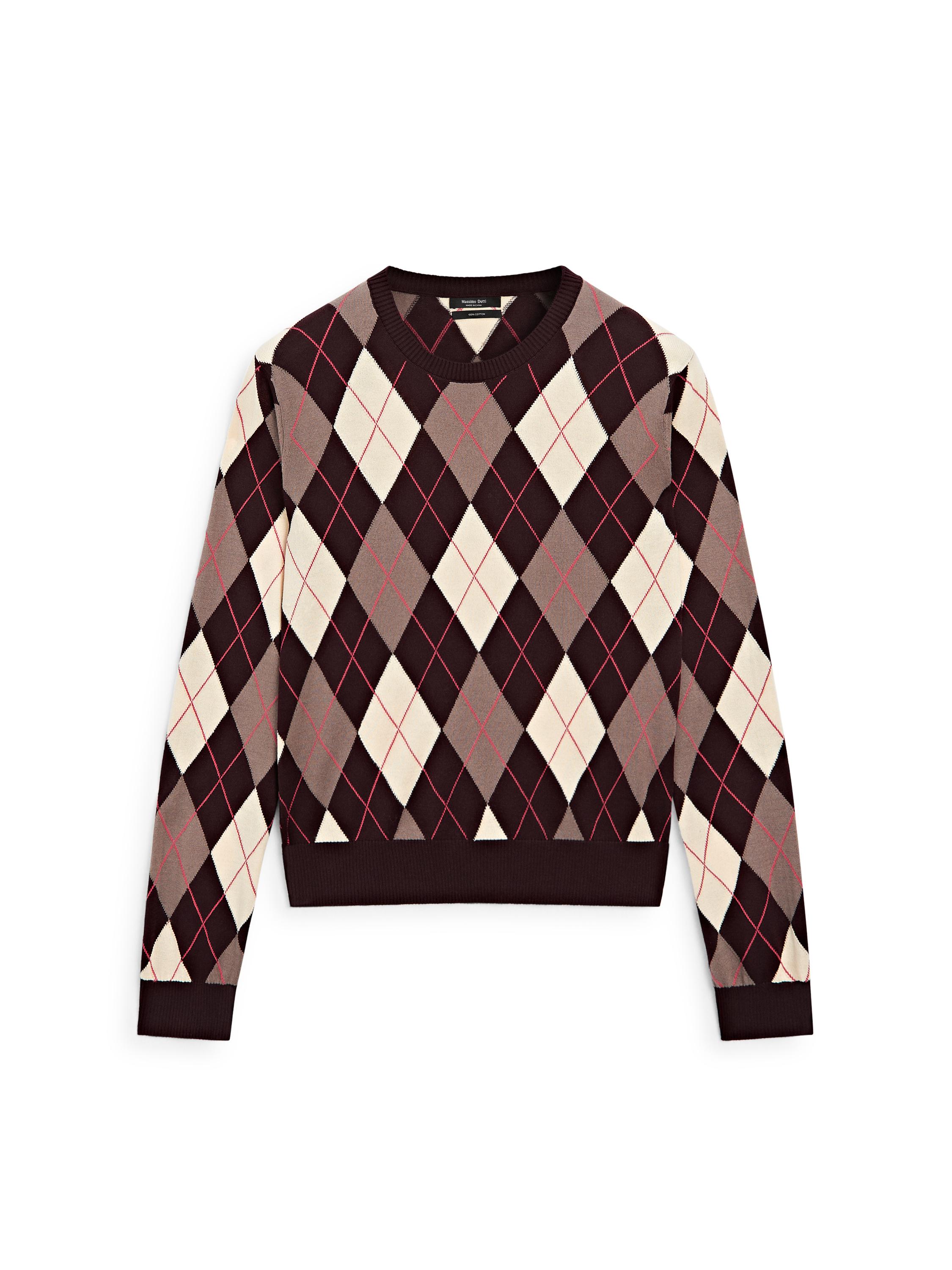 Pull en maille 100 % coton . Col rond. Manches longues. Avec détail de losanges. Finitions côtelées .