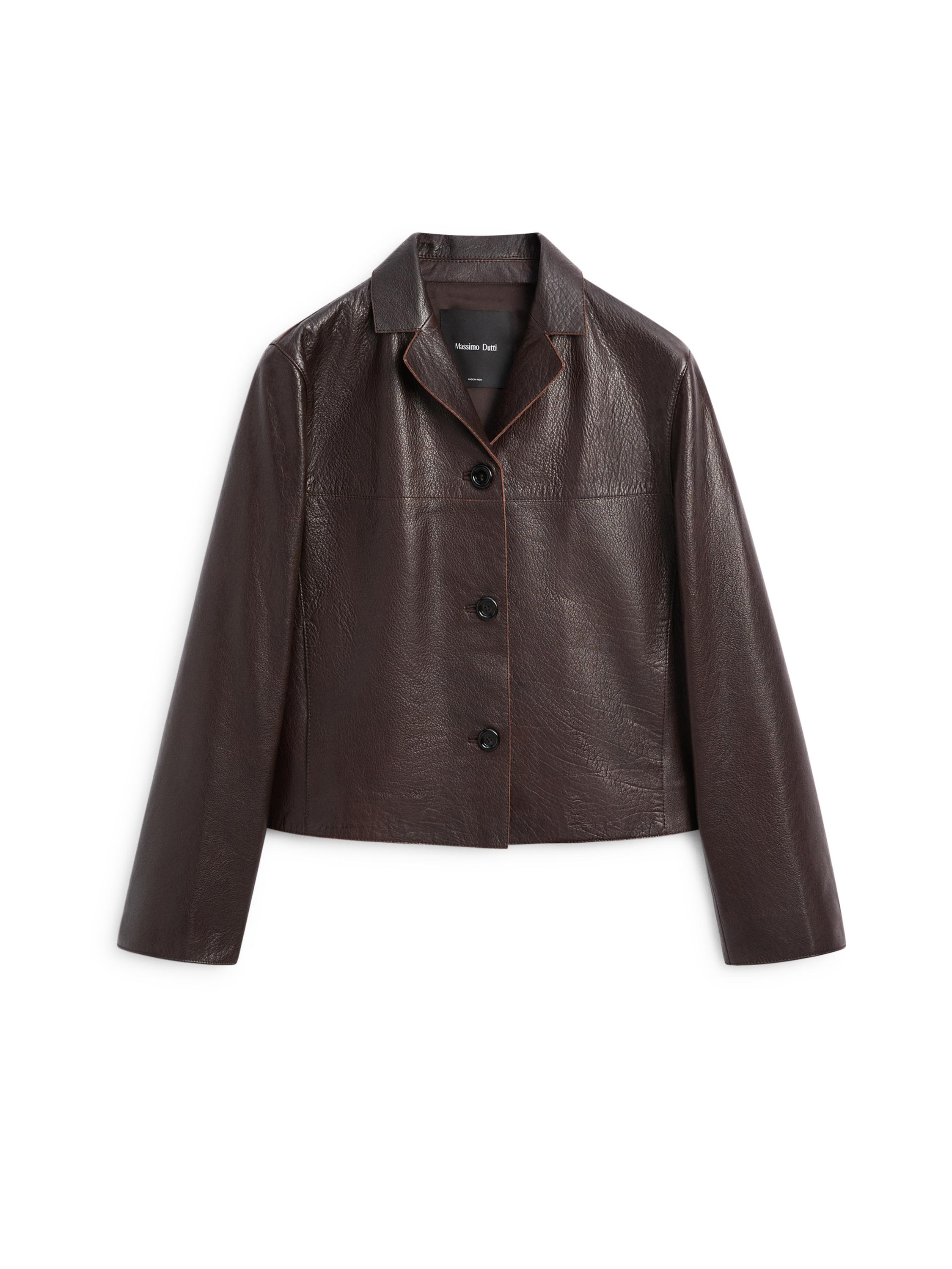 Blouson en cuir de vachette avec finition nappa. Col à revers. Manches longues. Fermeture à trois boutons. Deux poches sur les côtés. Deux poches plaquées. Doublure intérieure.