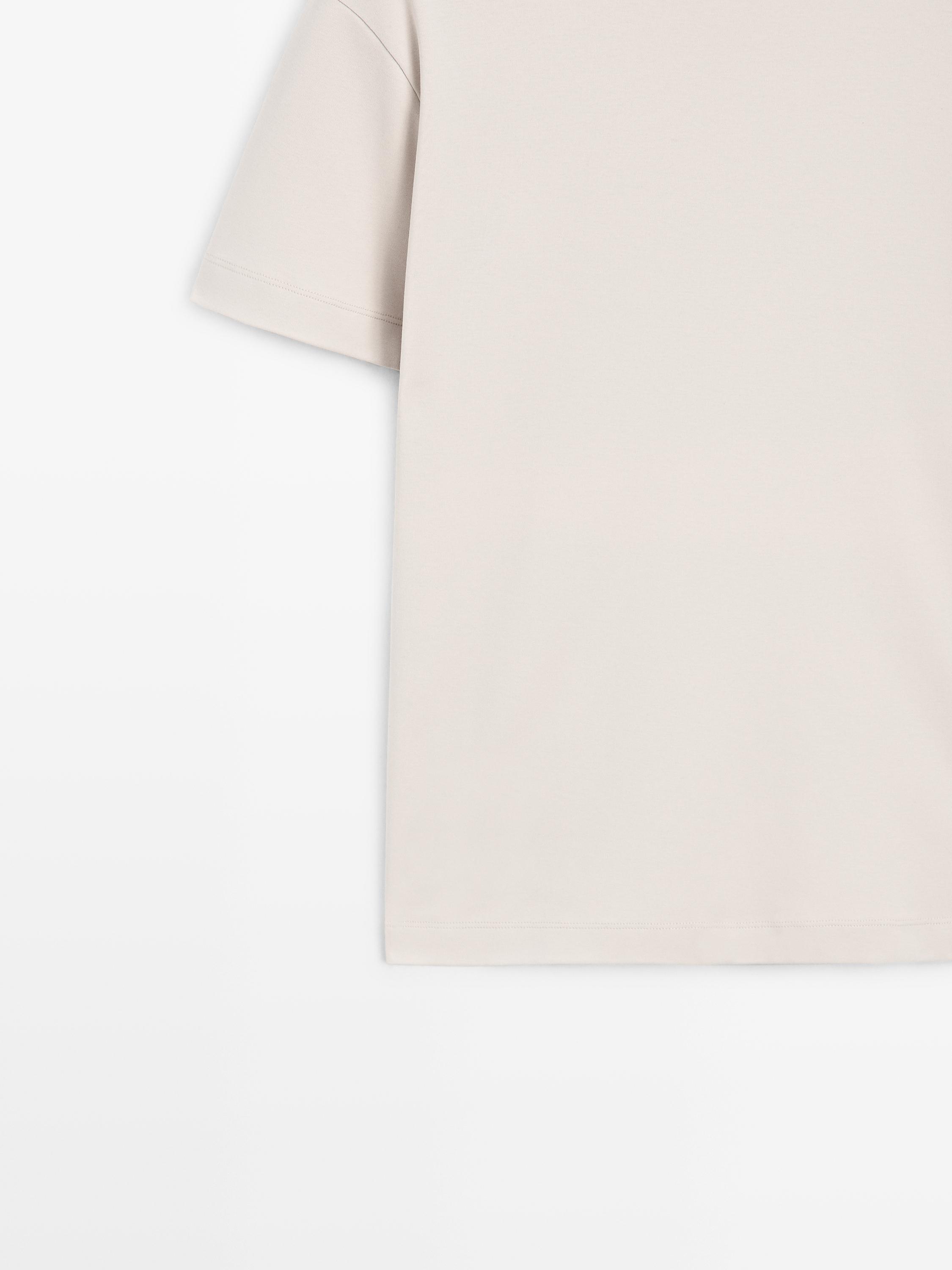 Camiseta confeccionada en tejido 100% algodón. Cuello redondo. Manga corta. Acabados en rib.
