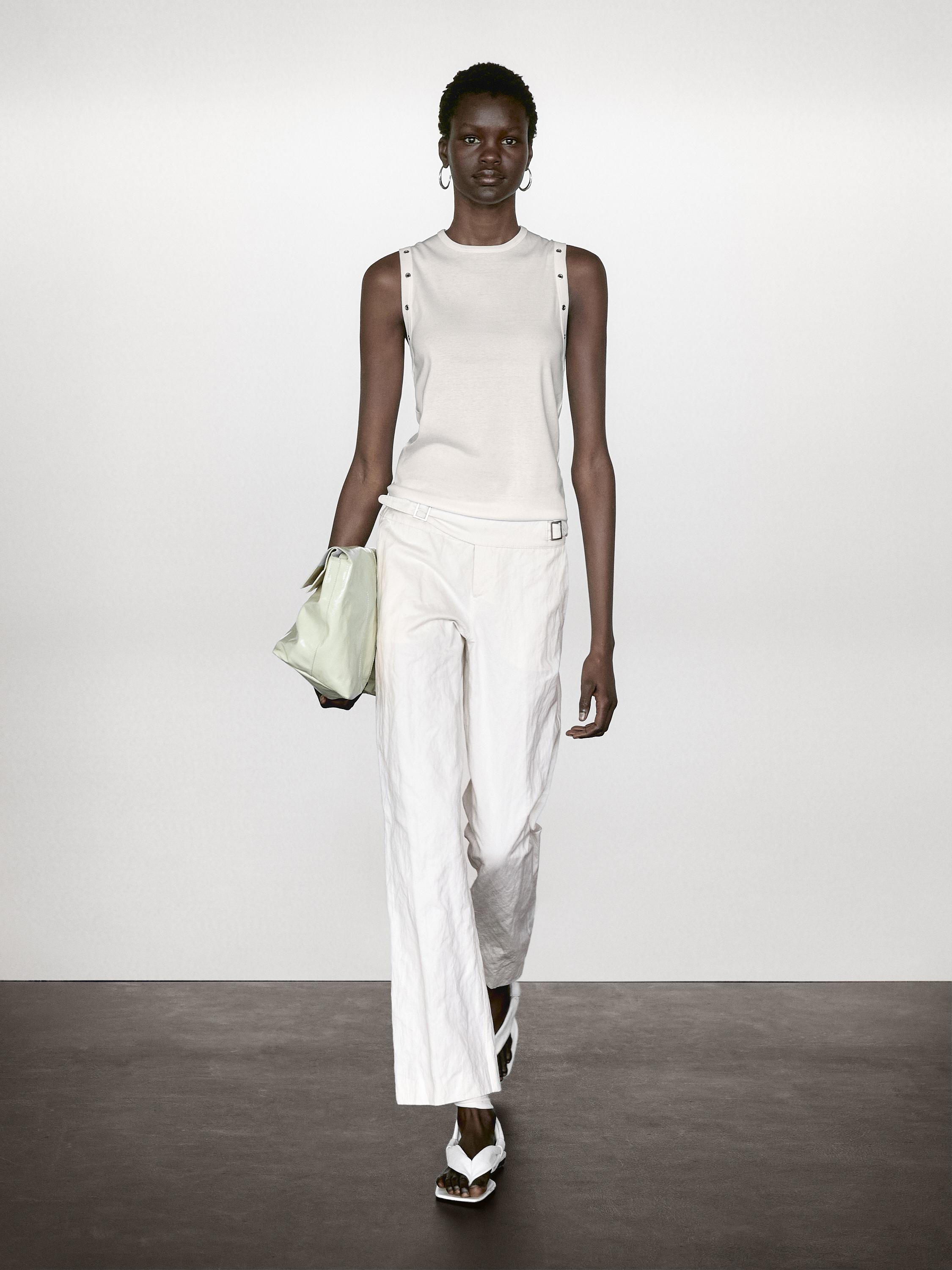 T-shirt made of 100% cotton. Crew neck. Sleeveless. Ribbed trims . Stud detail.