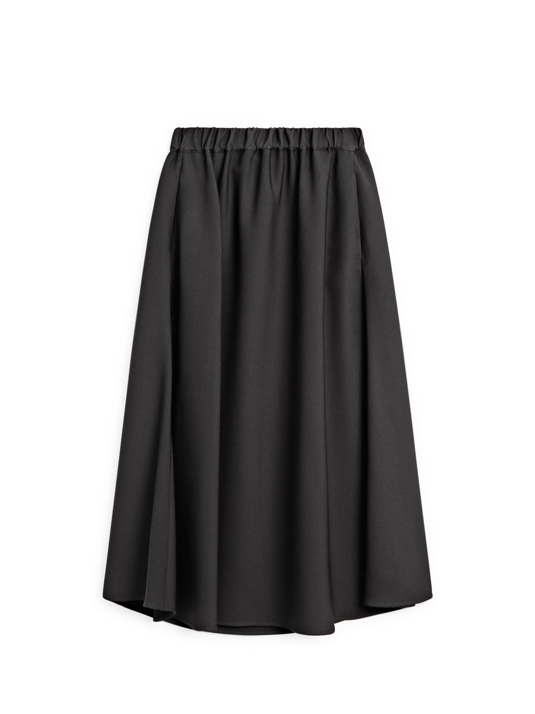 Flared midi skirt . Elasticated waistband detail. Two side pockets.