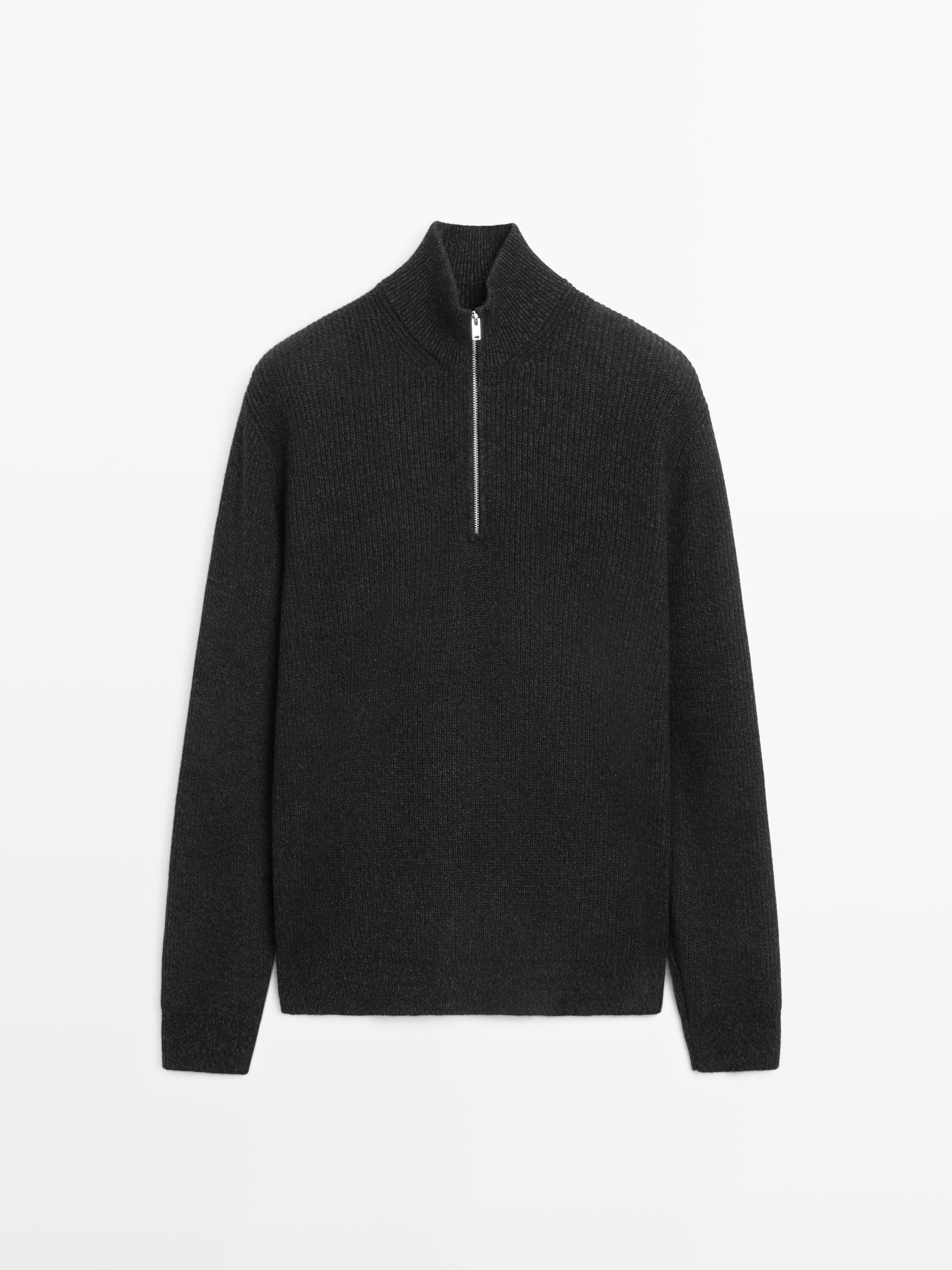 Jumper made from knitted fabric with cotton and wool. Dlouhé rukávy. Stojáček se zipem. Žebrované lemy .