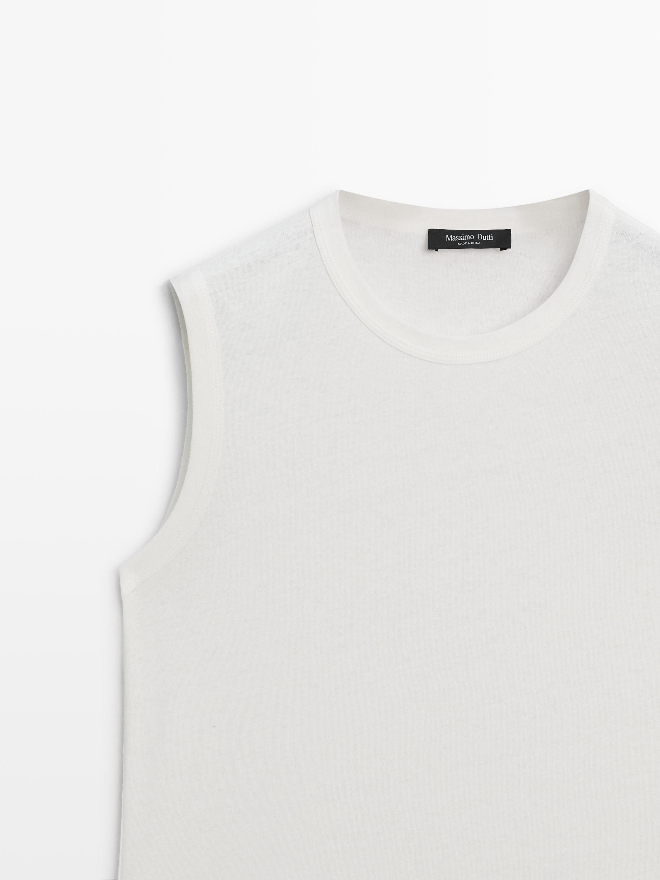 T-Shirt aus Gewebe mit Leinen und Baumwolle. Rundausschnitt. Ärmellos.