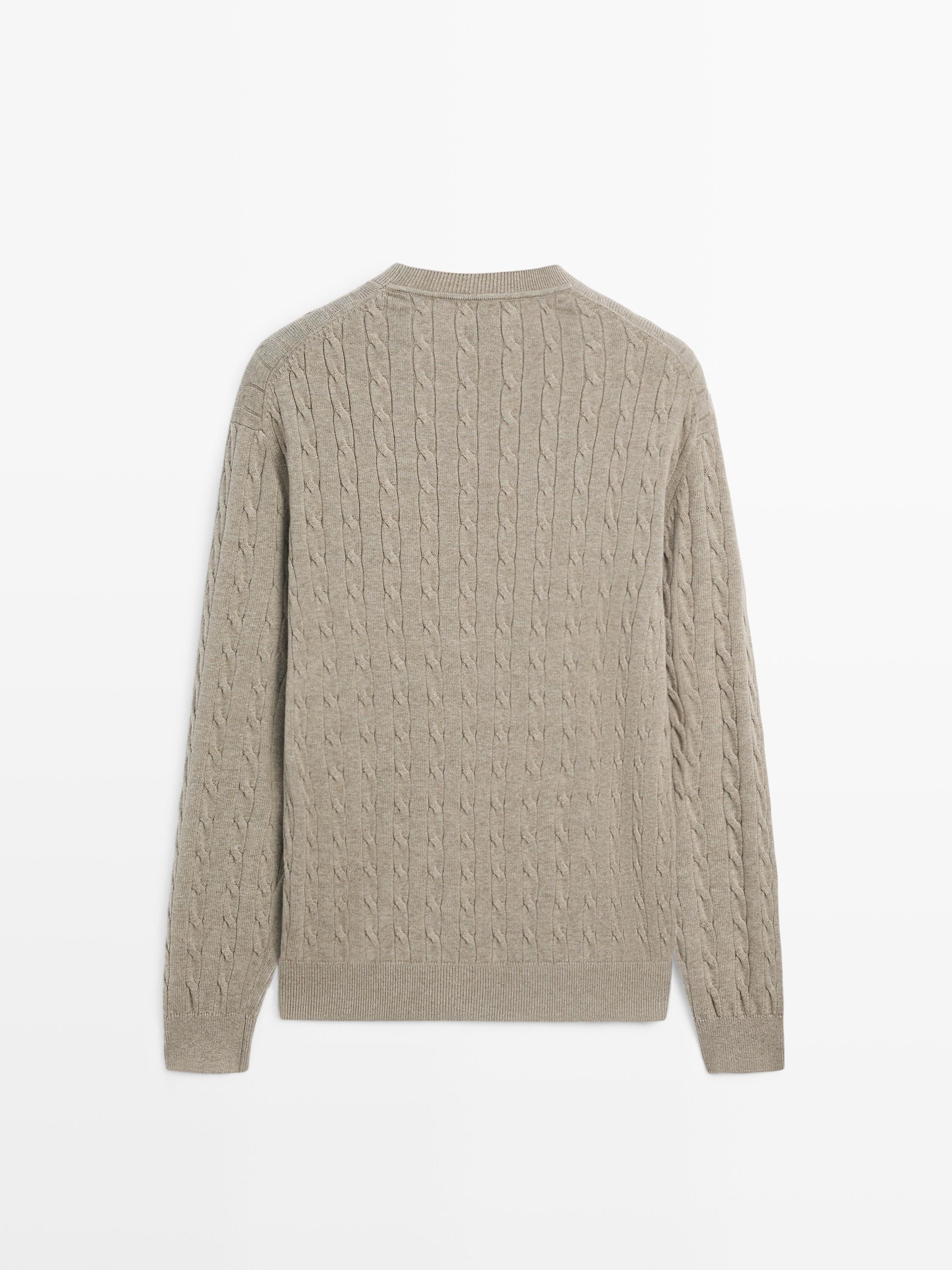 Strickpullover aus 100 % Baumwollgewebe . Rundausschnitt. Lange Ärmel. Geripptes Finish . Detail geflochtener Knoten.