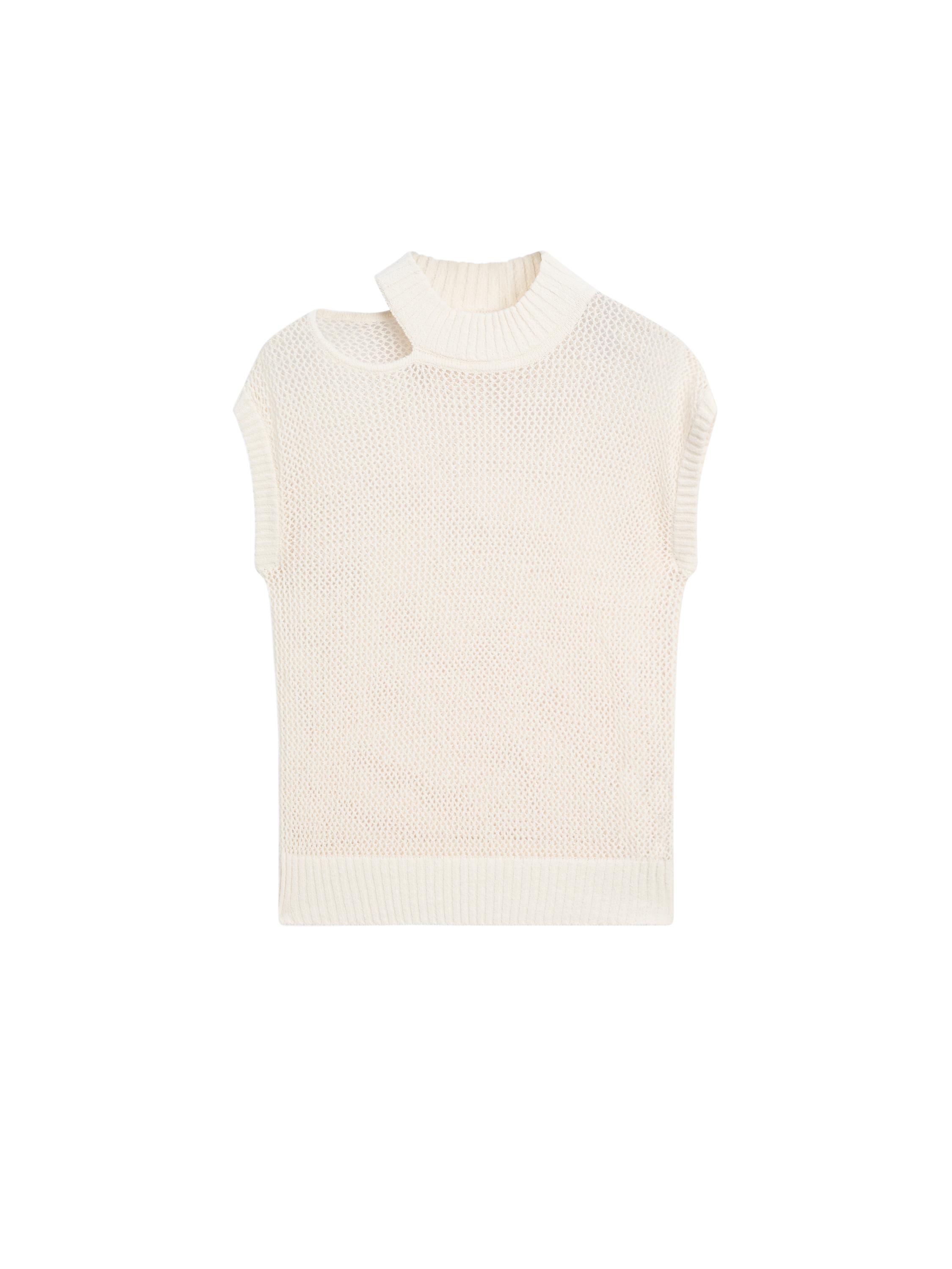 Top de punto confeccionado en tejido con algodón. Cuello redondo con abertura. Sin mangas. Acabados en rib.