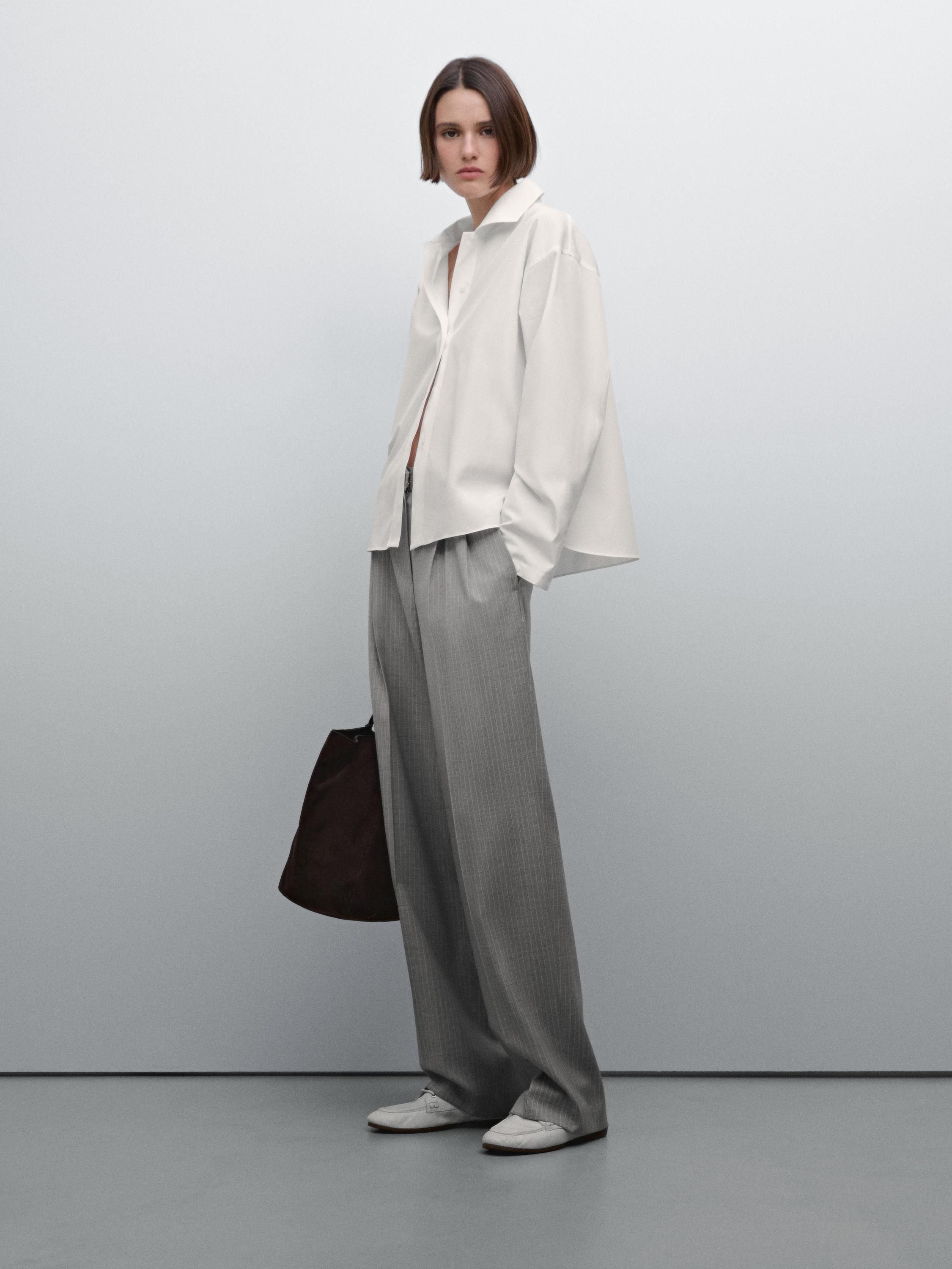 قميص مصنوع 100% من قماش قطن. طوق قميص. أكمام طويلة. أكمام بأزرار. زر علوي أمامي. قماش بوبلين. قصة أكثر مرونة لراحة أكبر..