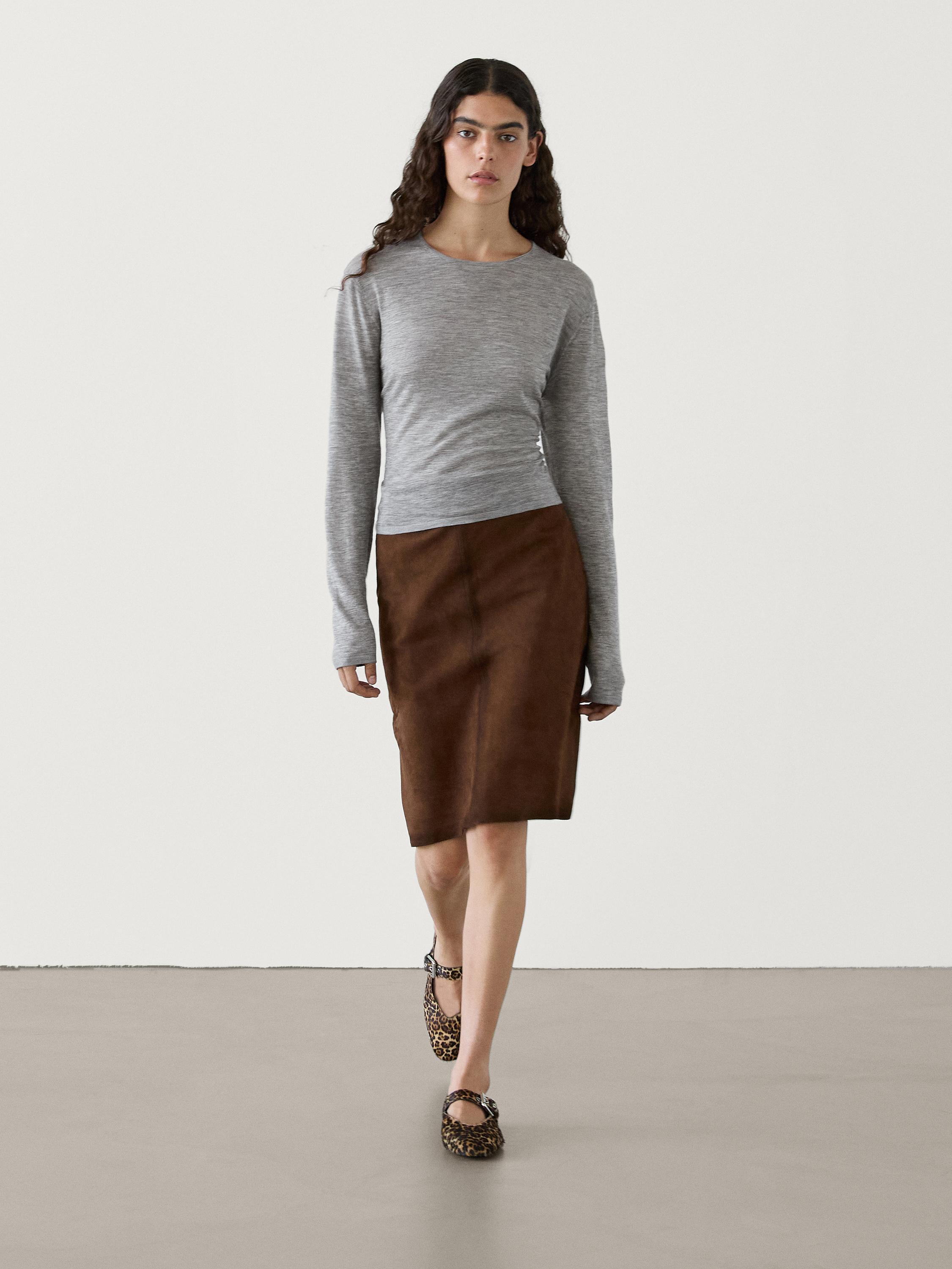 كارديغان محاك صوف 100% . ياقة دائرية دون طوق. أكمام طويلة. نسيج دقيق، خفيف.