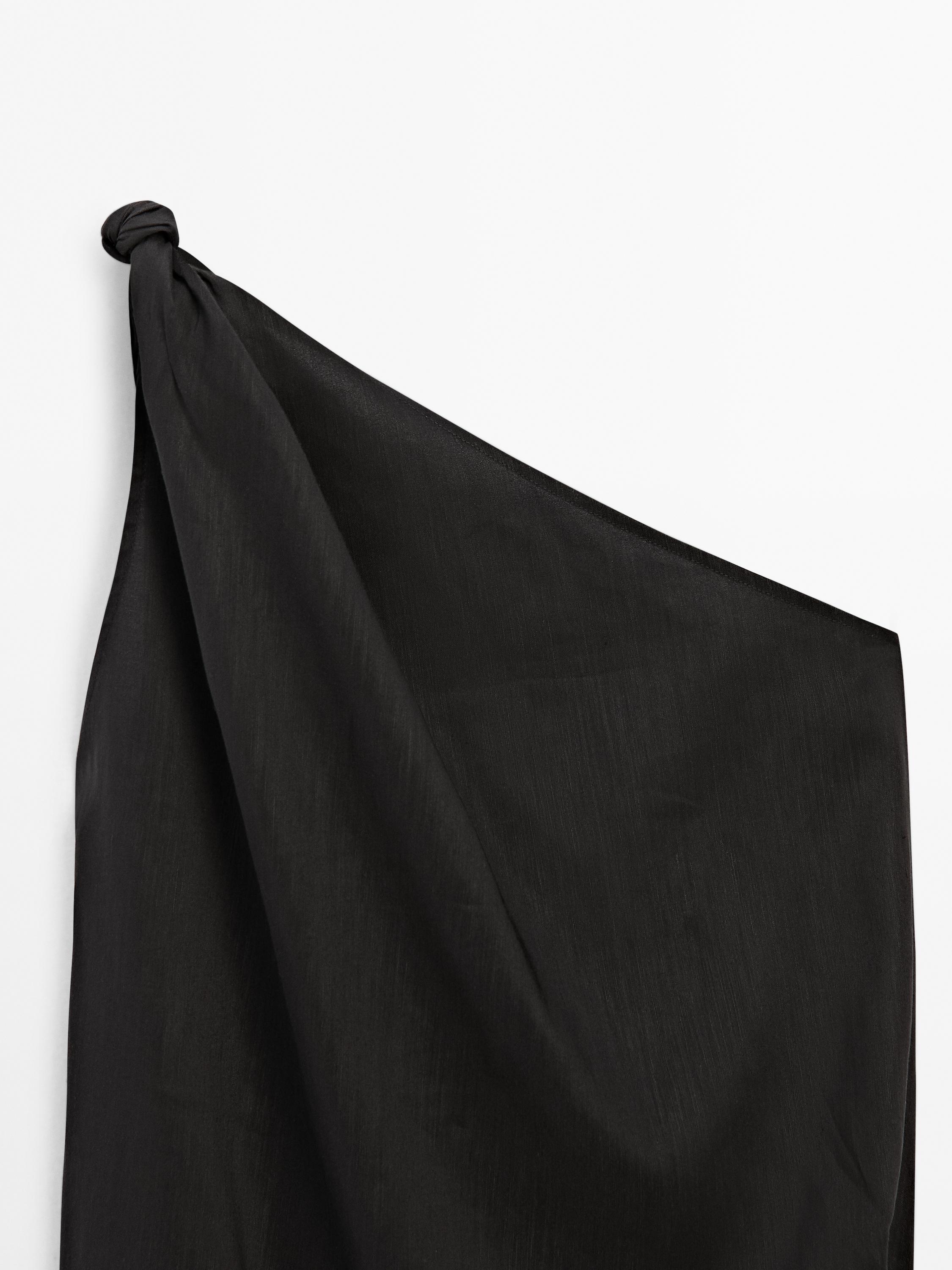فستان ميدي ستريتش غير متماثل من الكتان المخلوط