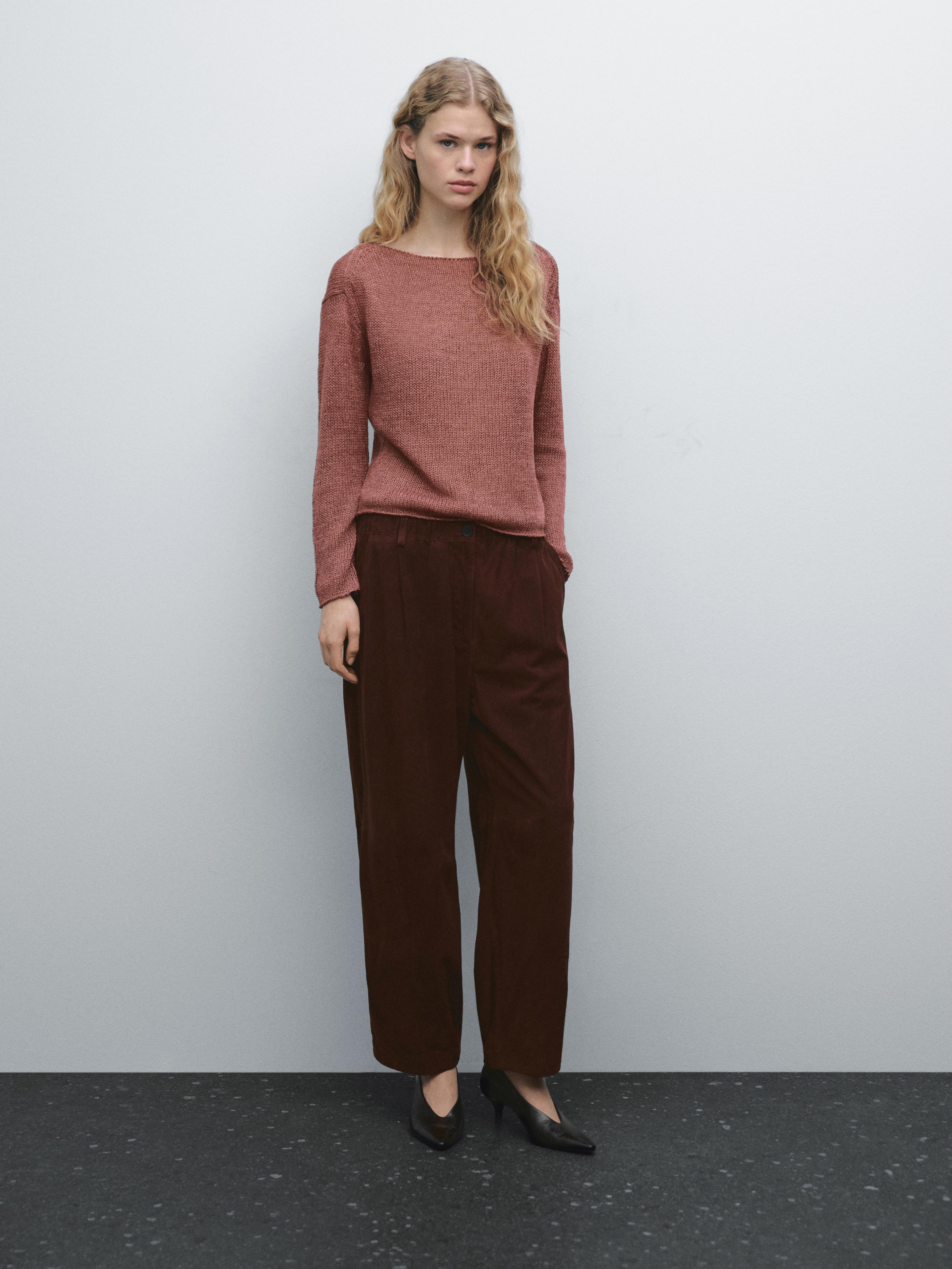 Jumper made of 100% linen fabric. ياقة مركب. أكمام طويلة. نسيج خفيف ومريح يسمح بحركة ممتازة.