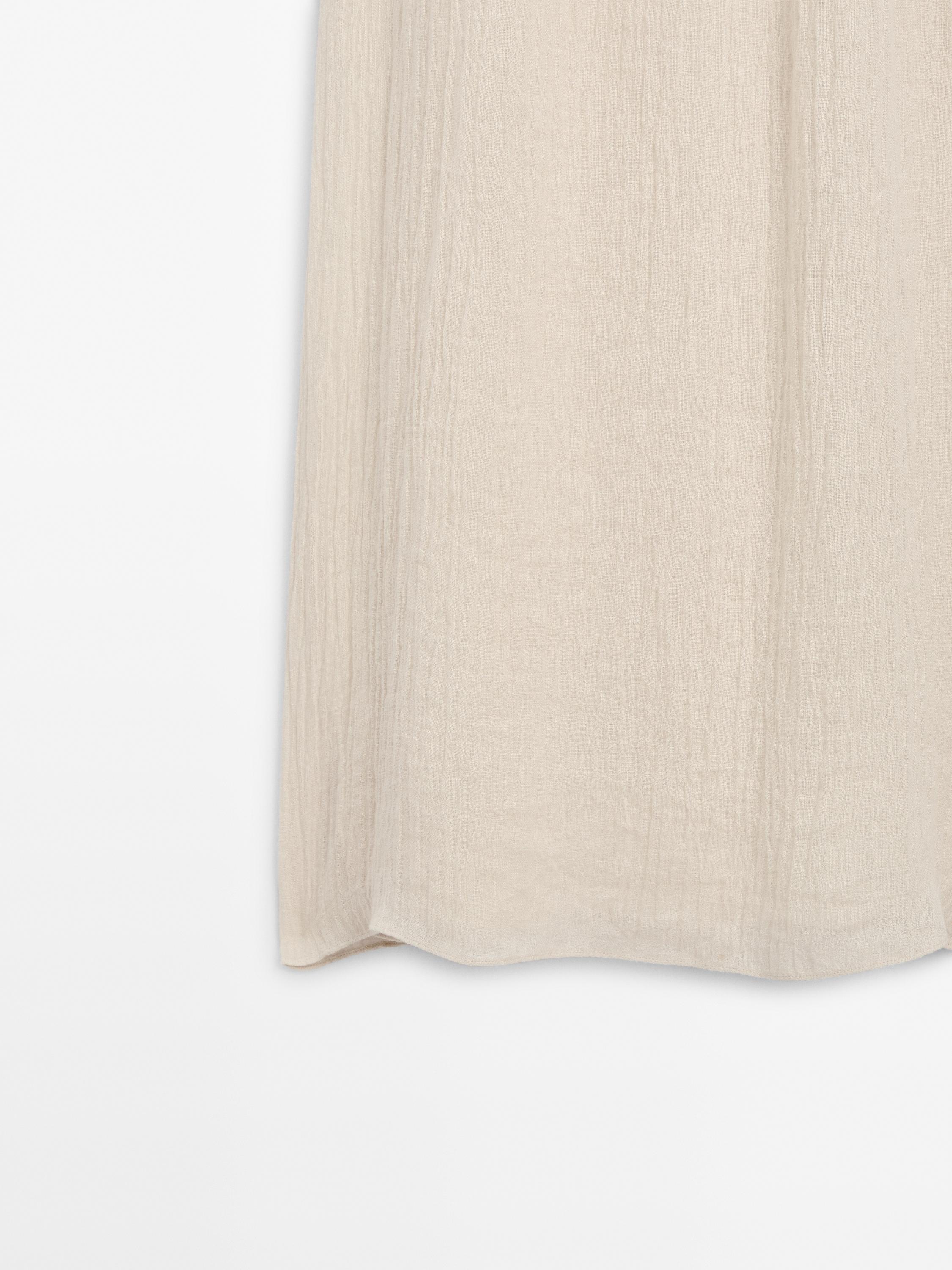 ياقة هالتر. مبطن. تفصيل بفتحة خلفية. مصنوع من الكتان بنسبة 100%. تصميم واسع ومريح، غير محبوك.