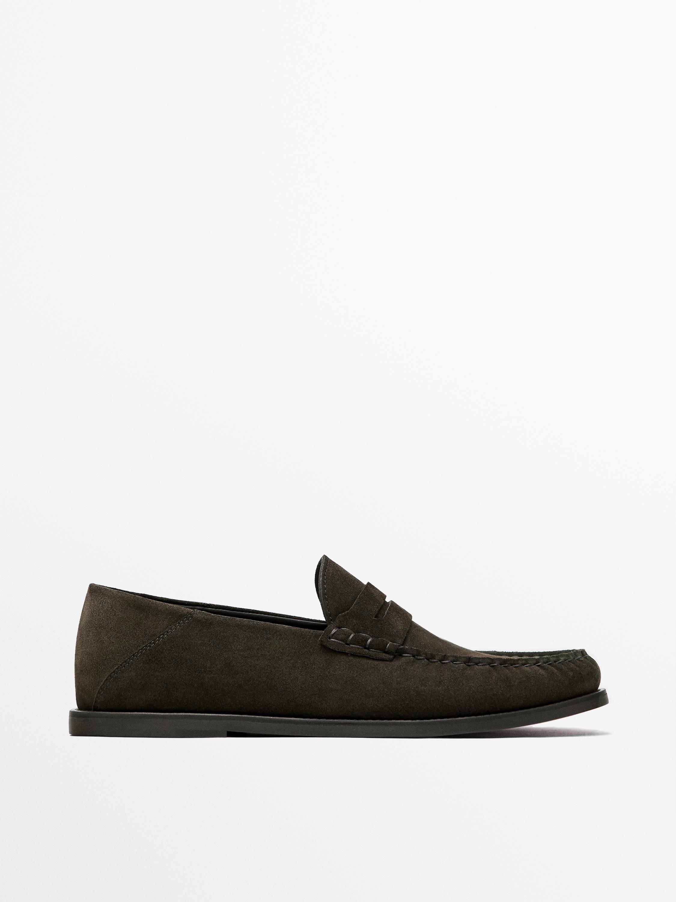 حذاء لوفر جلد شمواه بشريط علوي
