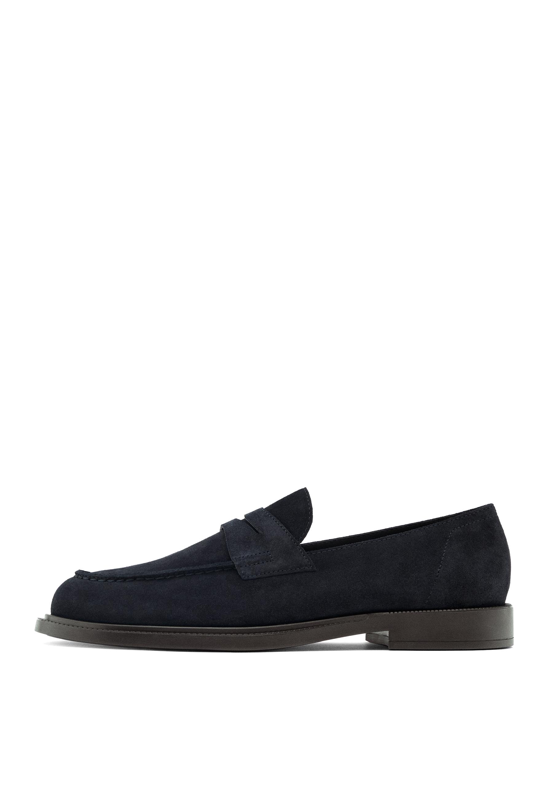 مصنوع من الجلد البقري بمظهر شمواه. تفصيل لشريط على سطح الحذاء. نعل داخلي وبطانة داخلية من الجلد . صنع في البرتغال.