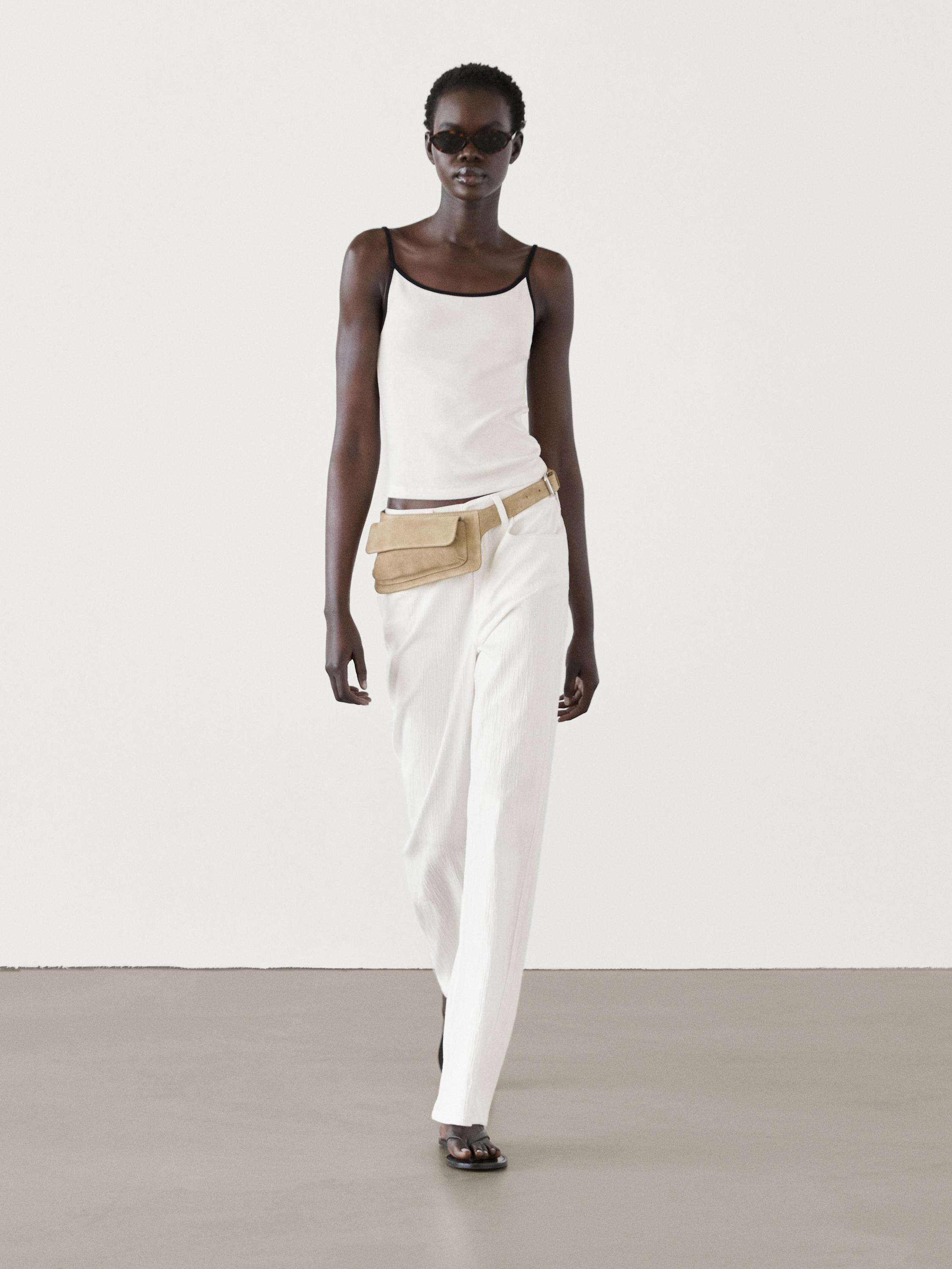 دون أكمام. مع أربطة. طوق متباين وحواف للأكمام. ياقة ممتدة . مصنوع من القطن بنسبة 100%.