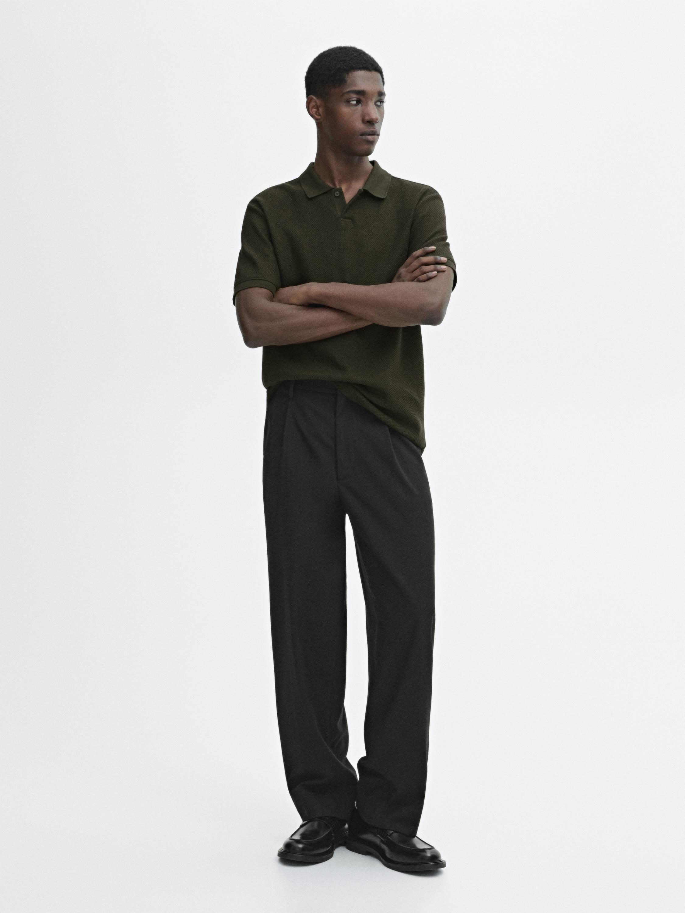 قميص بولو مصنوع 100% من قماش قطن محاك. أكمام قصيرة. ياقة بولو بزر للإغلاق. بملمس بارز. قماش بملمس بارز.