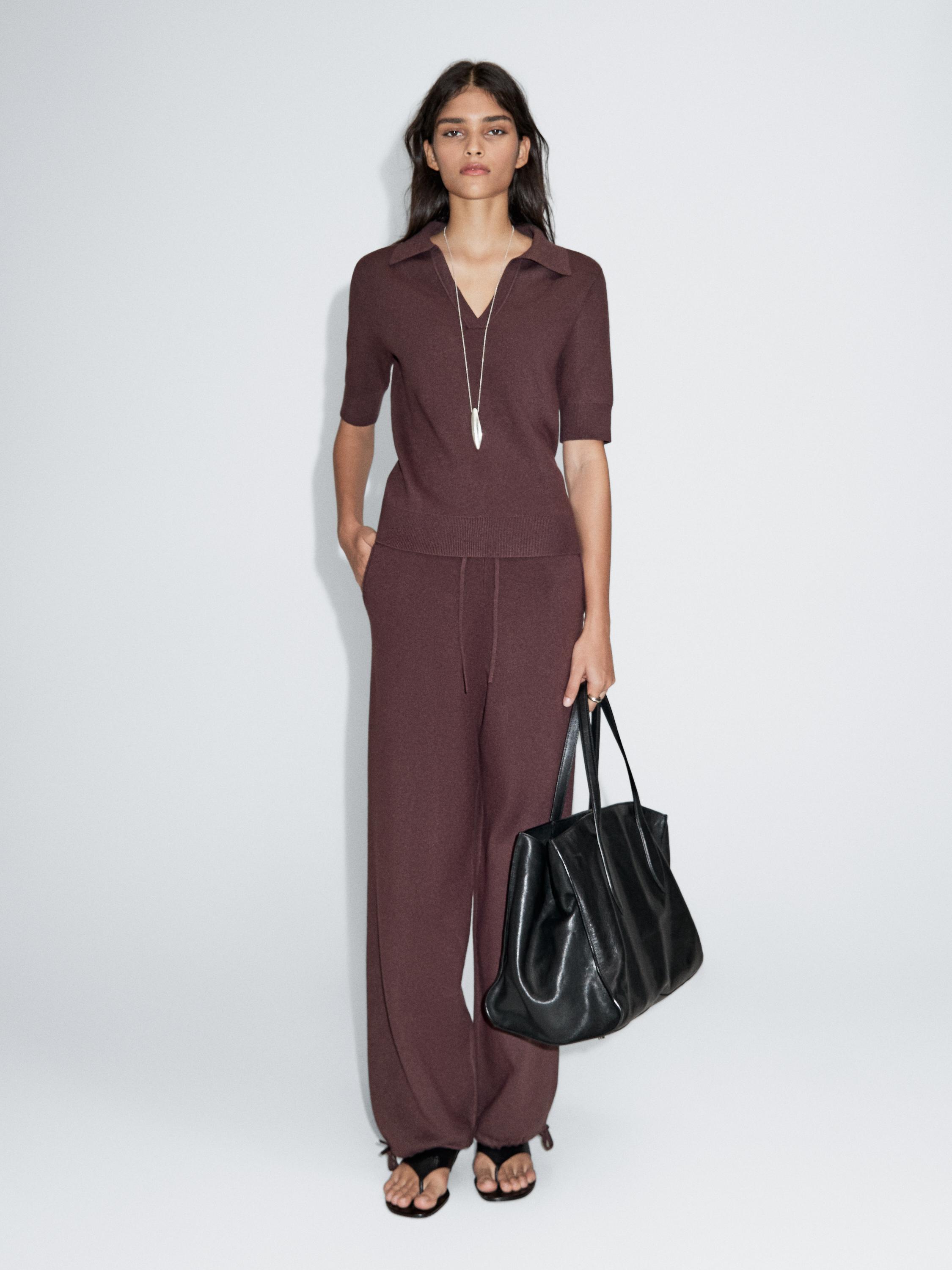 Pantalon ample et décontracté, non ajusté. Deux poches sur les côtés. Taille et bas réglables à l’aide de cordons. Tissu en maille. Dispose de vêtements pour ensembles.