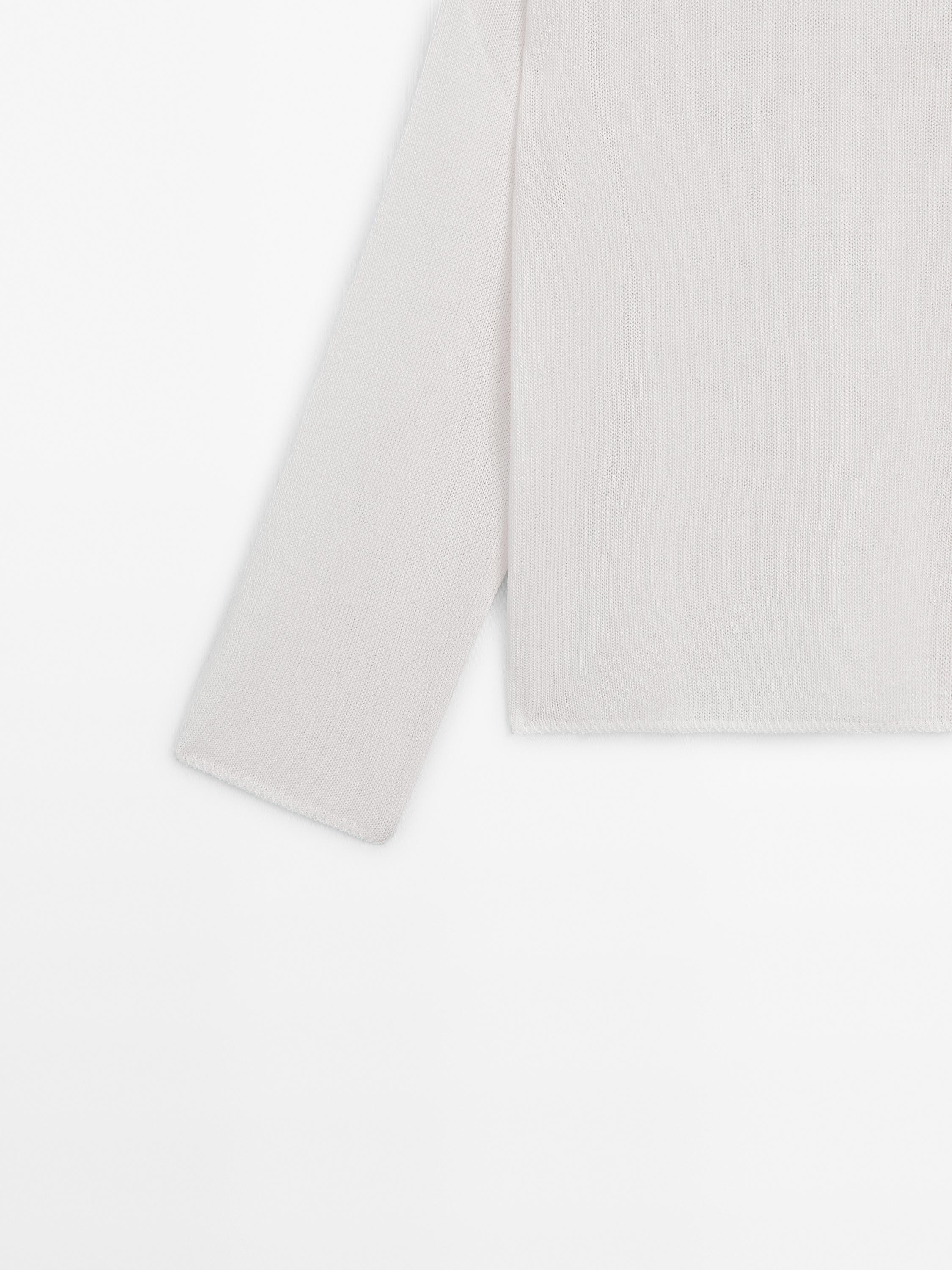 Pull en maille. Col rond. Manches extra larges. Épaules tombantes. Tissu semi-transparent. Silhouette ample et décontractée, non ajustée près du corps.
