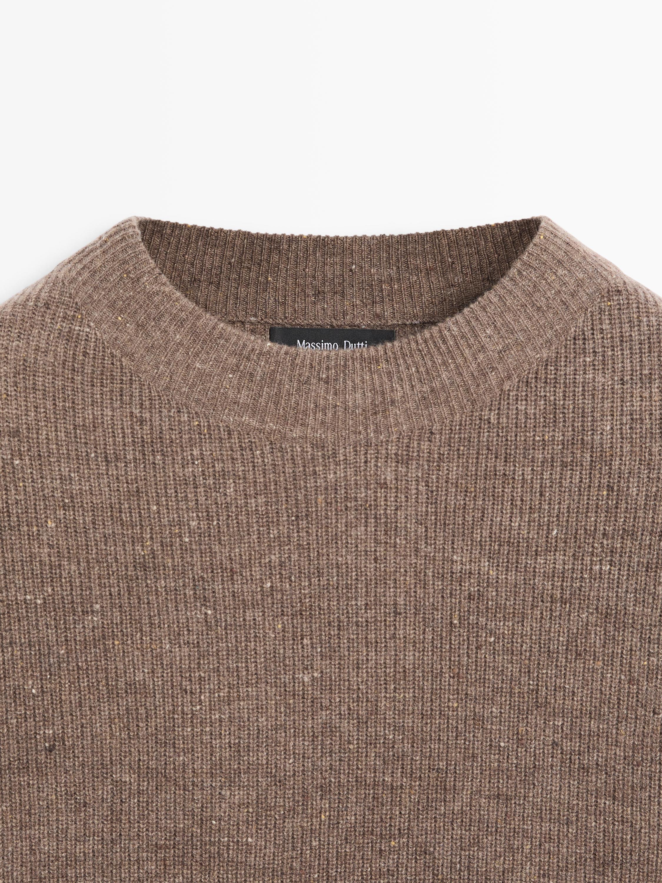 Jersey confeccionado en tejido 100% lana . Cuello redondo. Manga larga. Detalle de hilo con puntos a contraste .