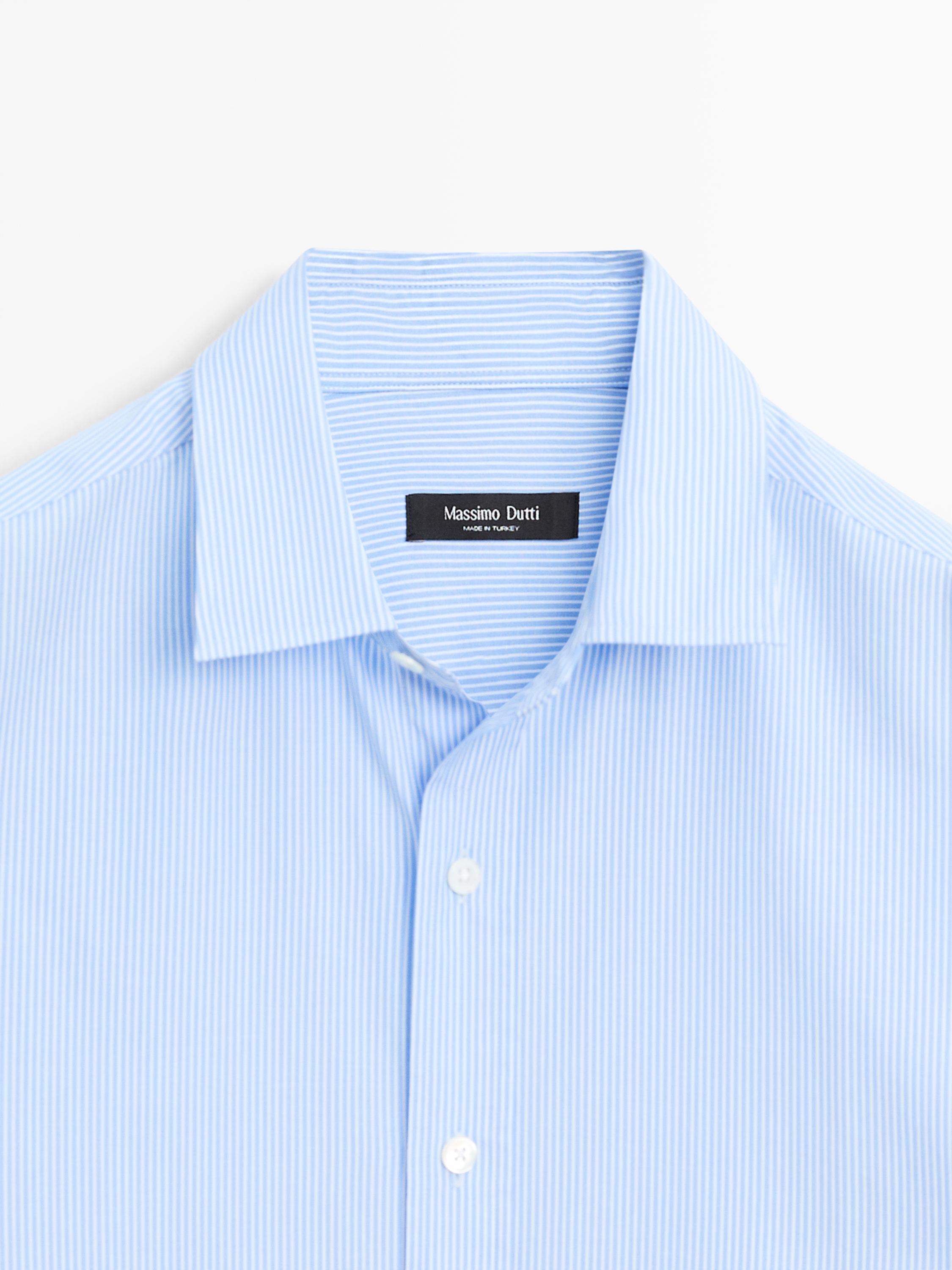 Классический крой: комфортная посадка с чуть увеличенным объемом в области груди и рук создает классический и в то же время непринужденный стиль.. Длинные рукава и манжеты на пуговицах. Отложной воротник. Застежка на пуговицы спереди. Принт в полоску. Модель из 100% хлопка.