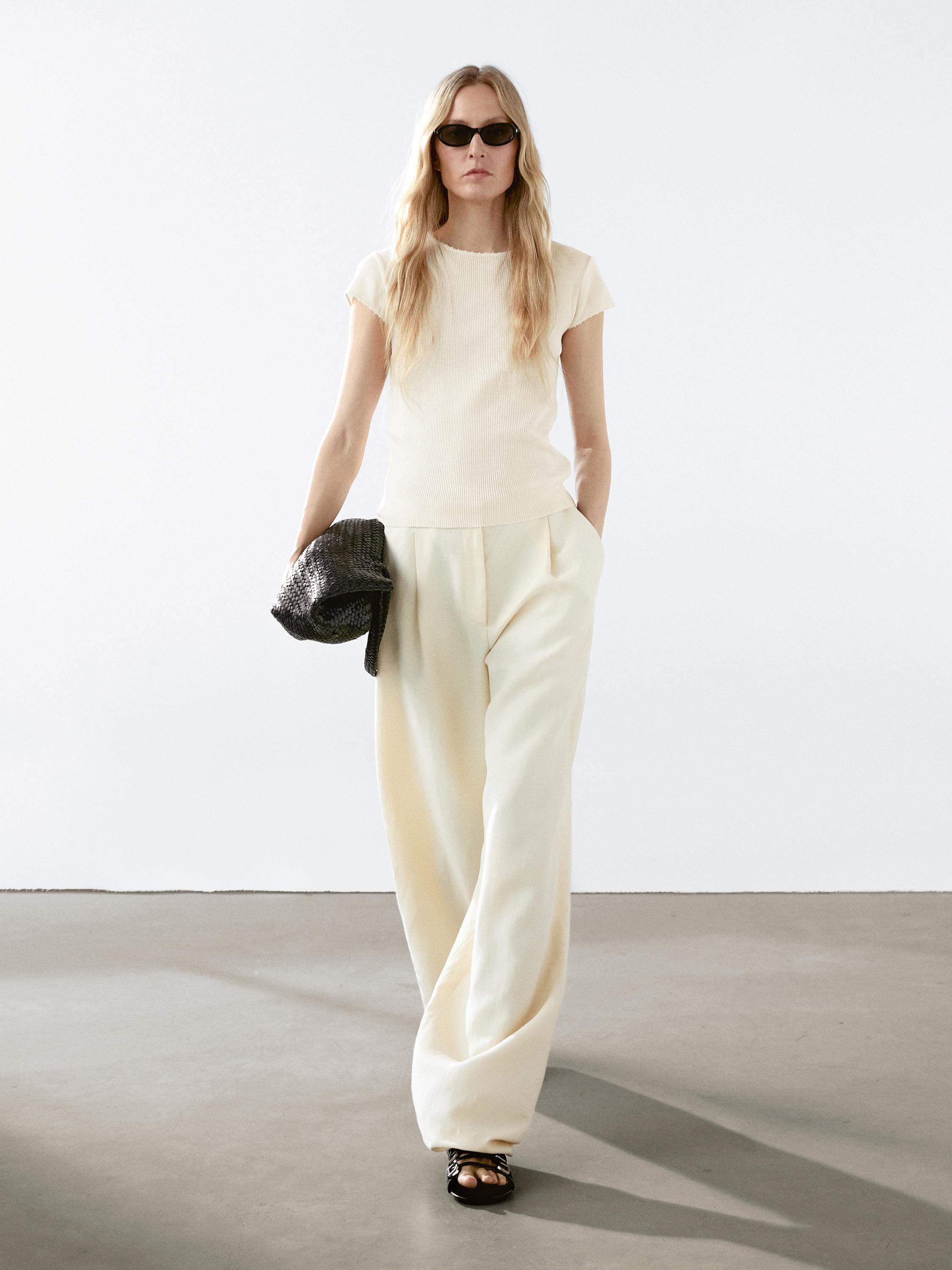تيشرت مصنوع 100% من القطن. ياقة دائرية دون طوق. أكمام قصيرة. شريط حاشية محزز. تفصيل درز منتوفة.