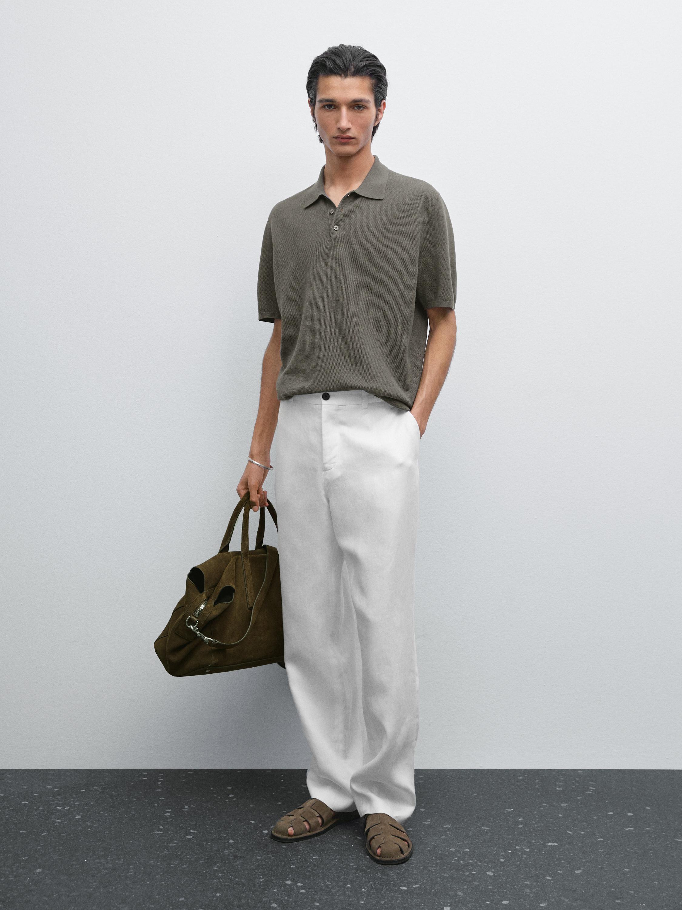 قميص بولو مصنوع 100% من قماش قطن محاك. أكمام قصيرة. طوق بأزرار من الأسفل. شريط حاشية مضلع . قماش بملمس بارز. قماش خفيف بملمس بارز .