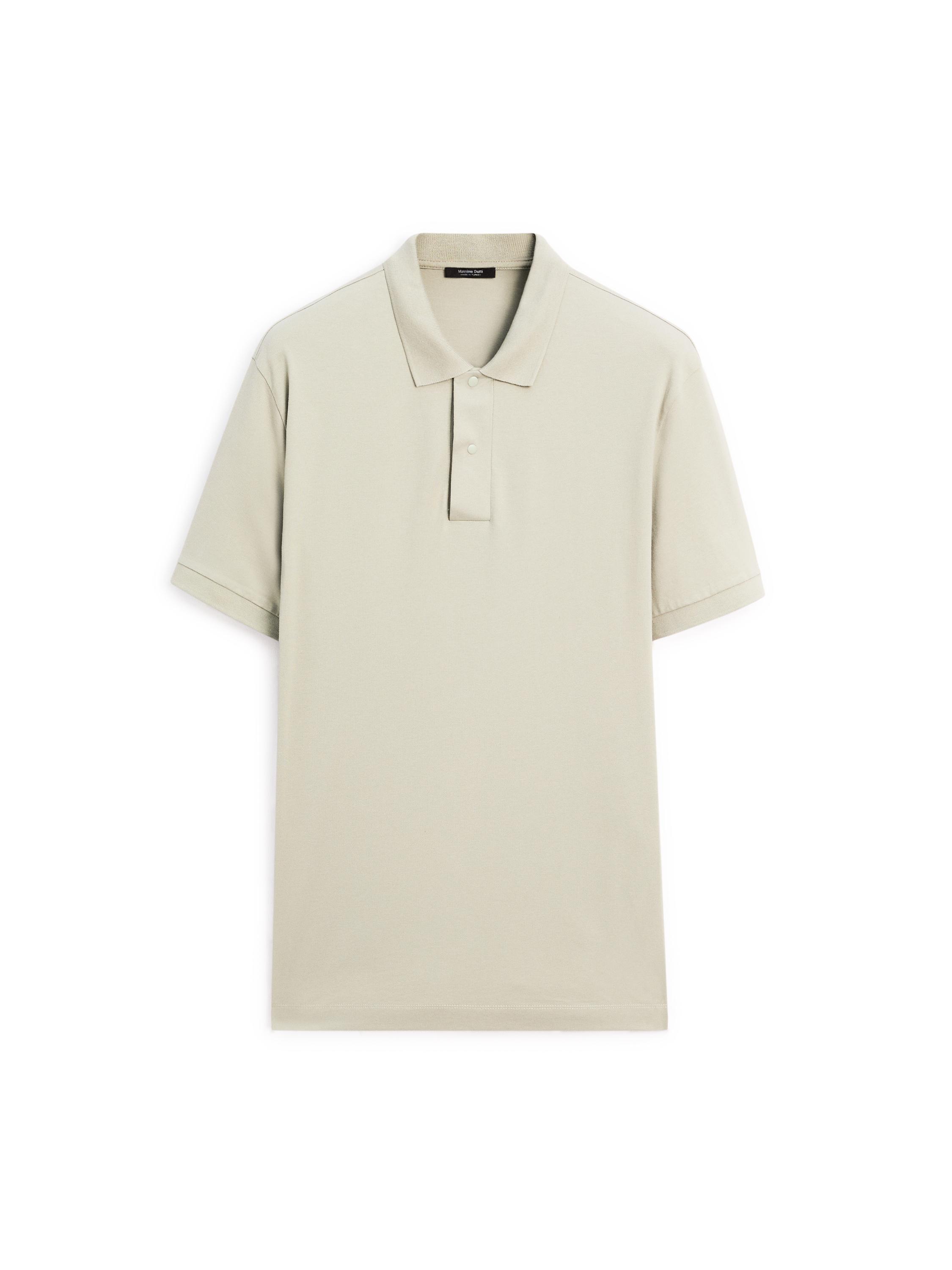 قميص بولو مصنوع من نسيج كتان مخلوط . تصميم محبوك قليلاً، يمنح مظهرًا أنحف وأكثر تحديدًا. أكمام قصيرة. طوق بأزرار من الأسفل. إغلاق بزر كبس.