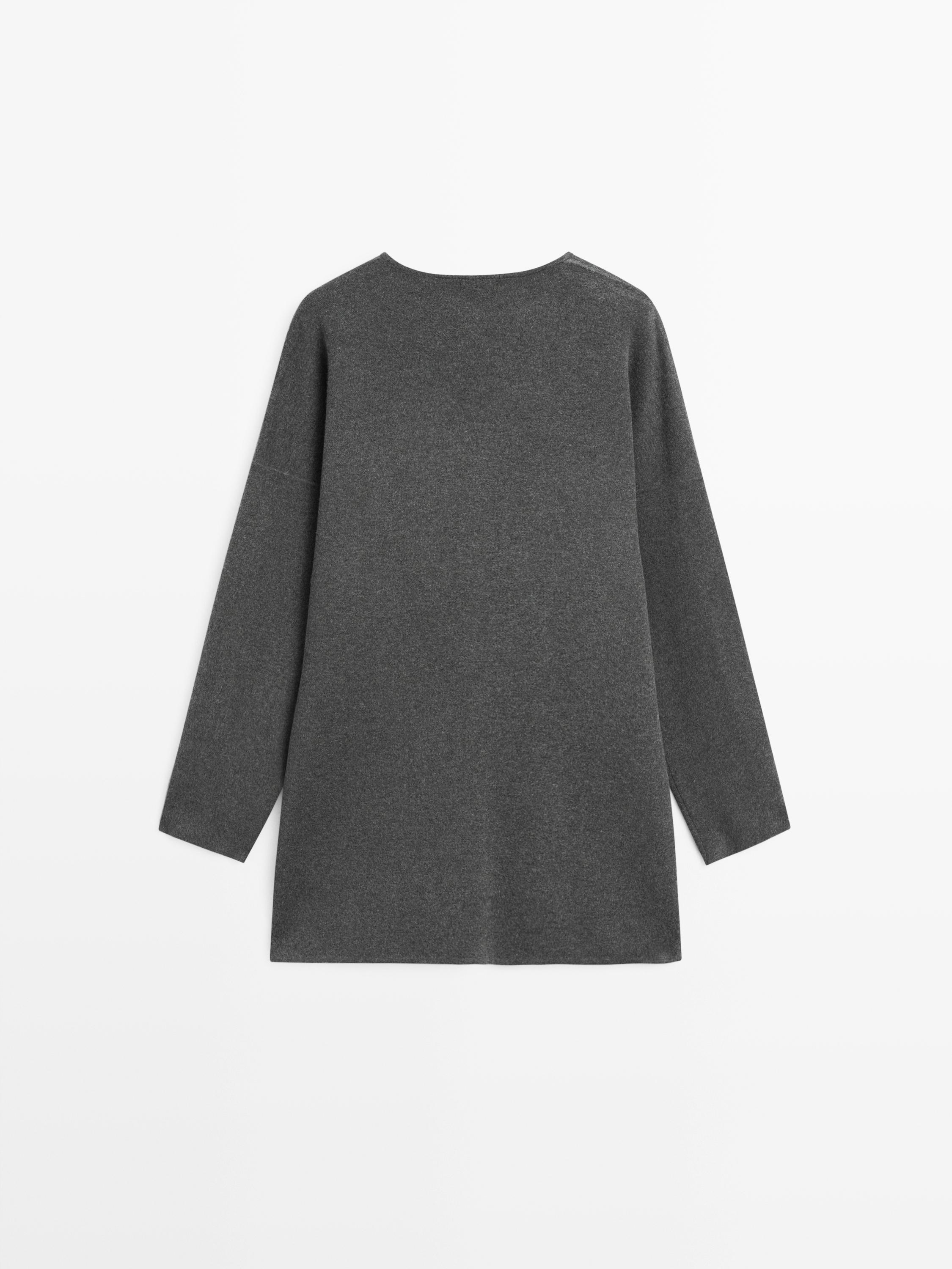 كارديغان محاك. ياقة دائرية دون طوق. أكمام طويلة. زر علوي أمامي. تفصيل بأكتاف ساقطة. متاح قطعة بلون مماثل.