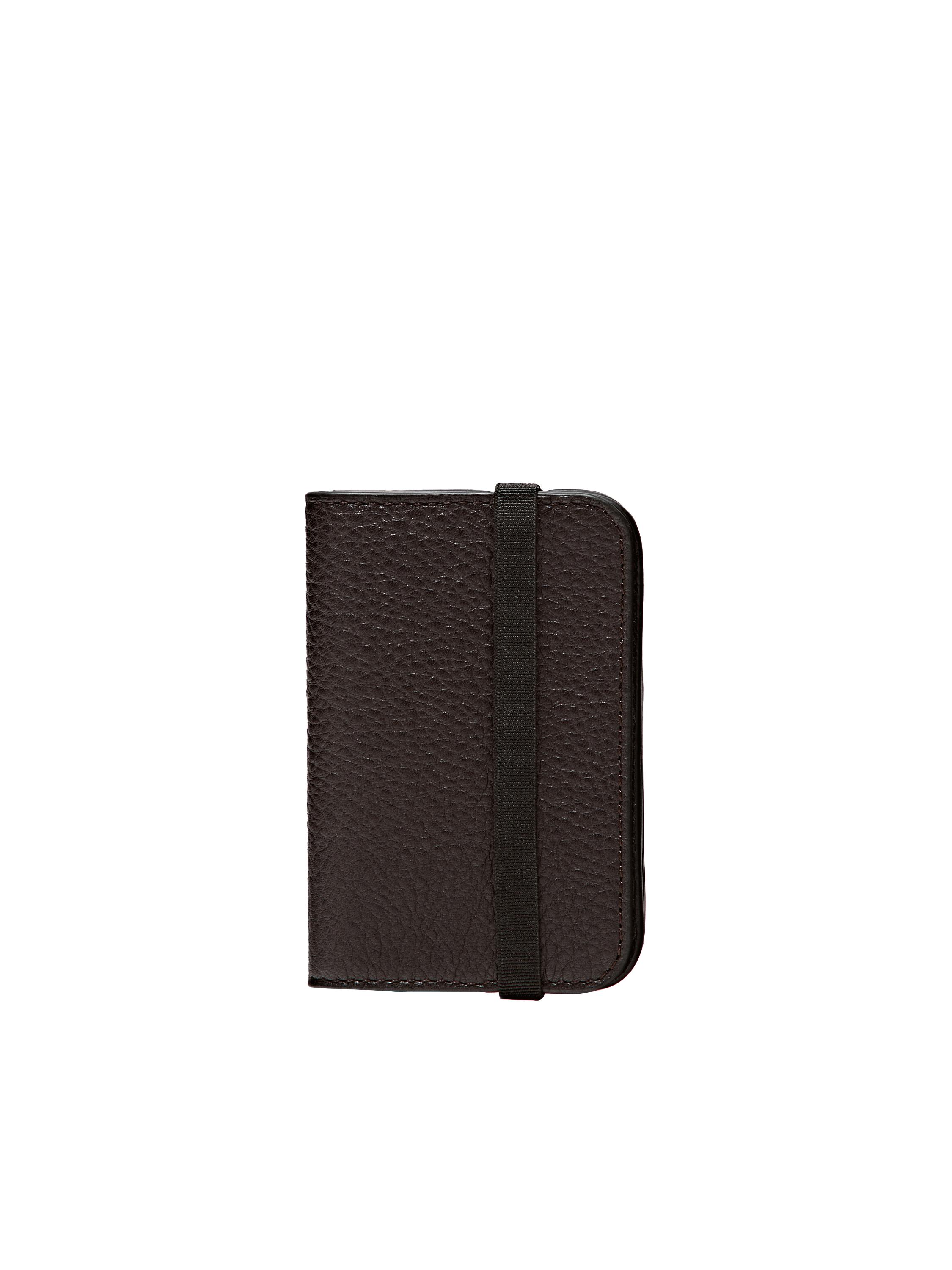 حافظة بطاقات مصنوعة من الجلد البقري بلمسة من جلد النابا. إغلاق بشريط مرن. تحتوي على 3 أقسام.