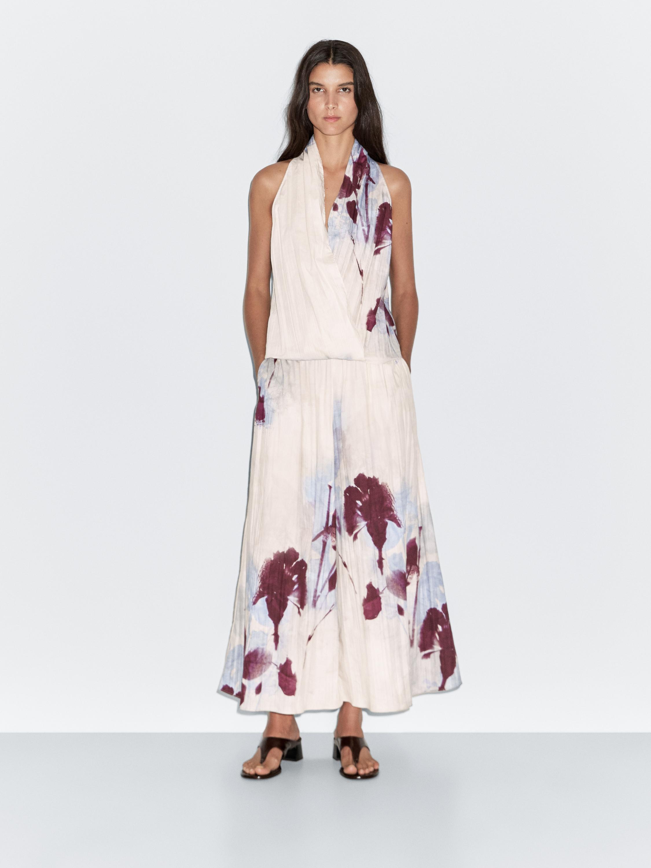 Culotte trousers, wide and straight silhouette from the hip to the hem, ankle length. تفصيل شريط خصر مرن. متاح قطعة بلون مماثل. مصنوع 100% من قماش قطني. تصميم واسع ومريح، غير محبوك.