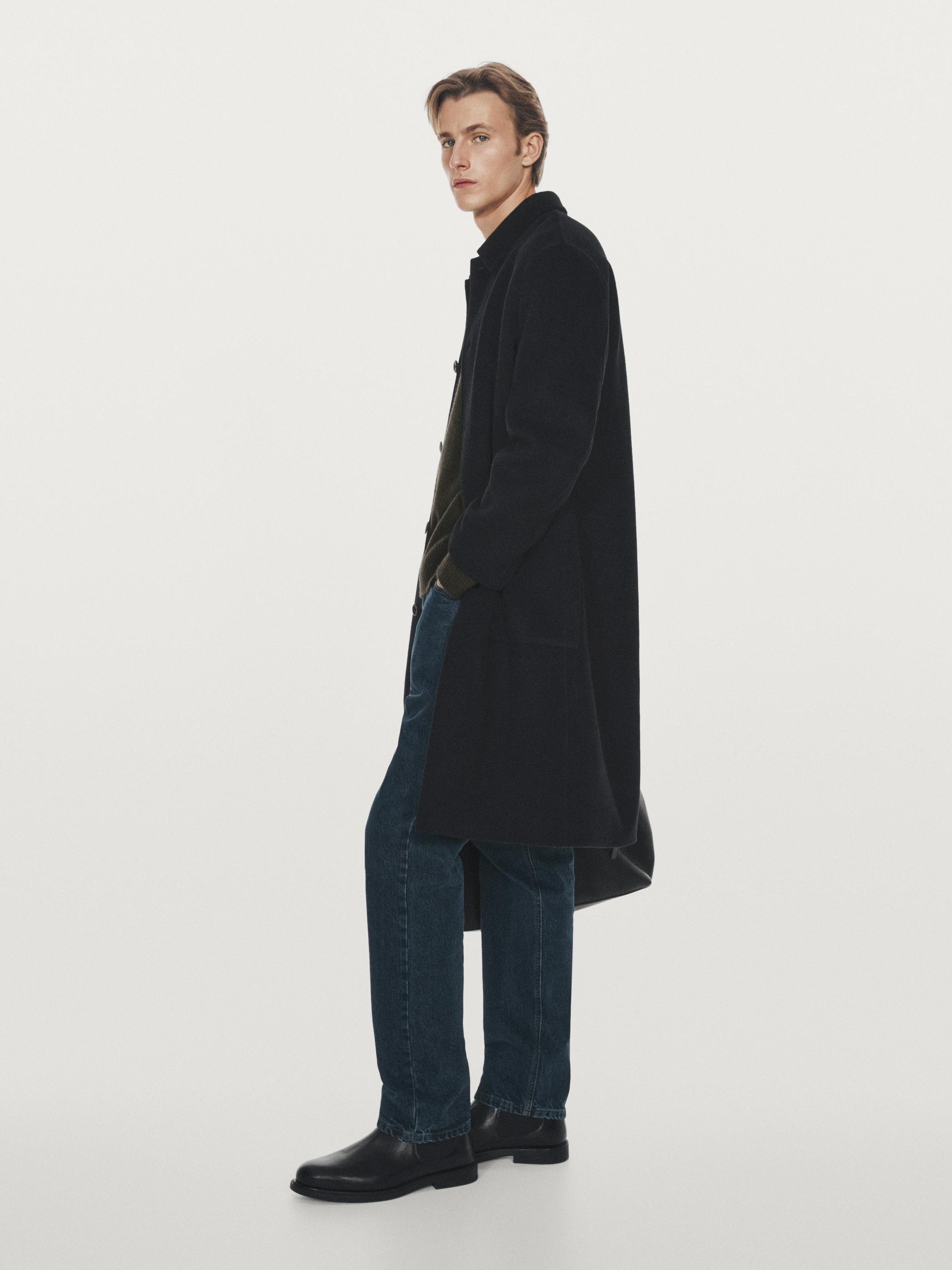 Abrigo confeccionado con tejido 100% cashmere. Cuello camisero. Manga larga. Cierre mediante botonadura frontal. Un bolsillo de parche.