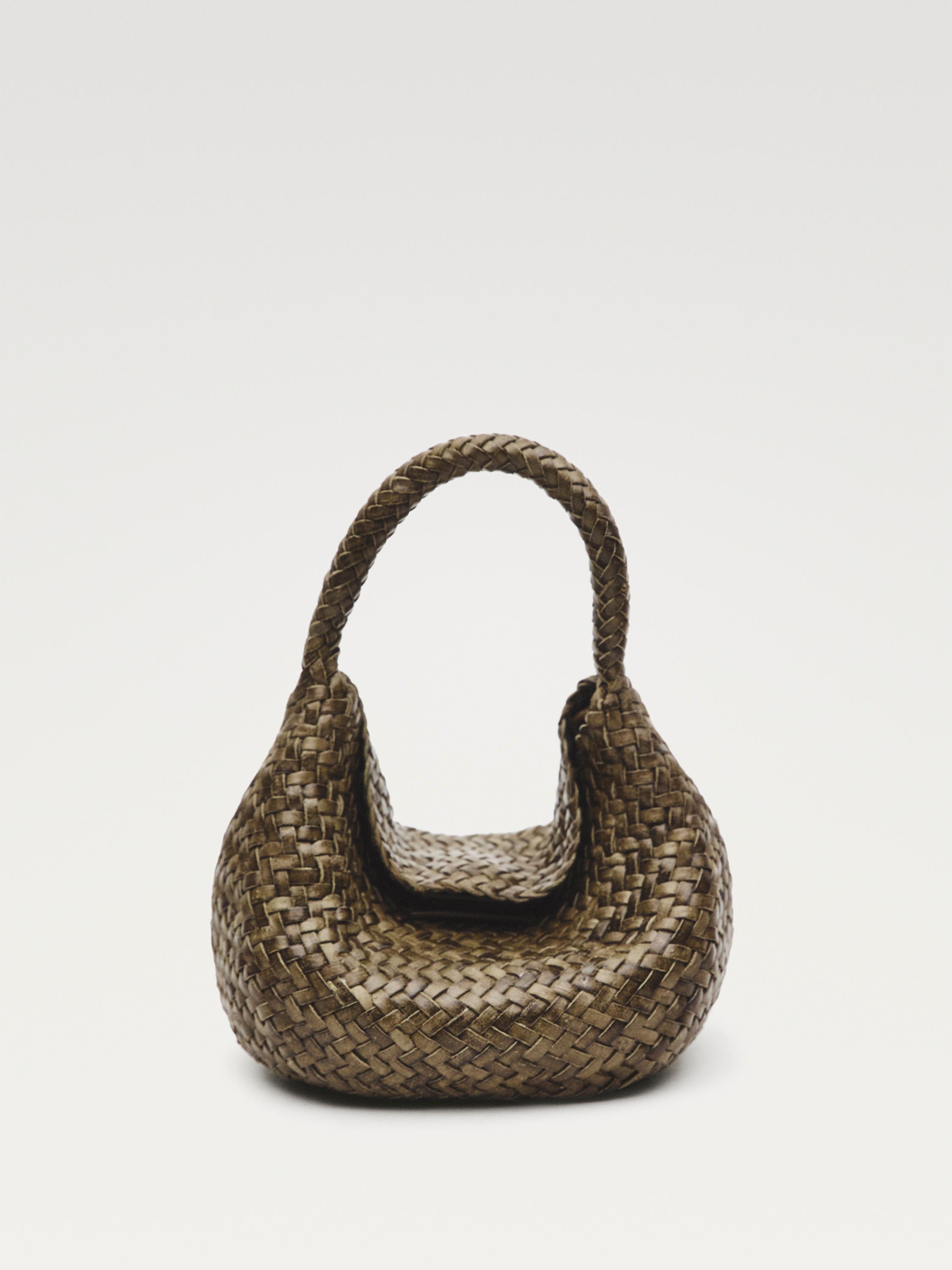 Bossa mini confeccionada amb pell bovina i acabat de napa. Tancament mitjançant botó de pressió amagat. Nansa de mà. Braided detail.