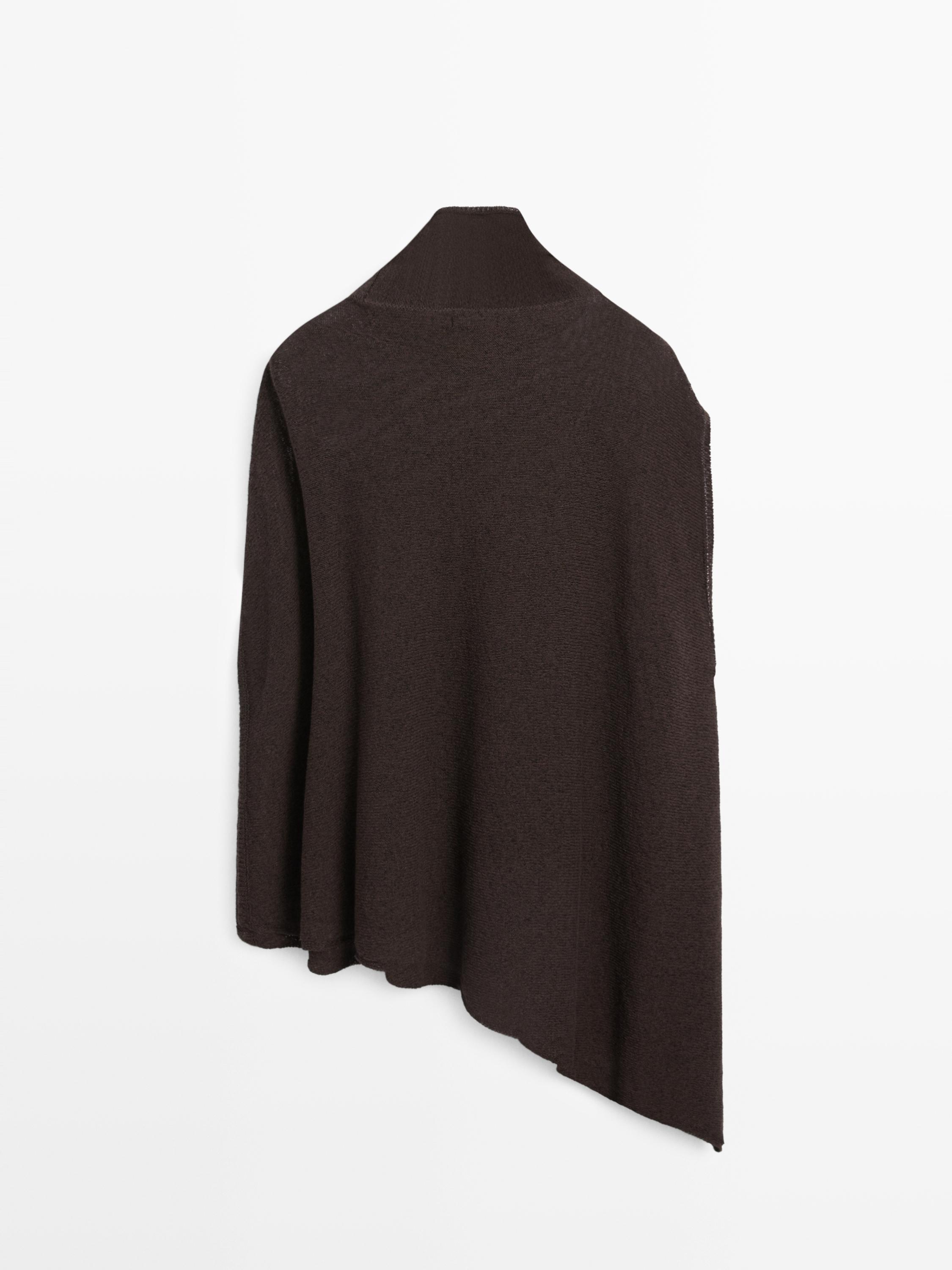 Capa confeccionada amb teixit de punt. Sense mànigues. Tall asimètric. Coll alt esbocat.