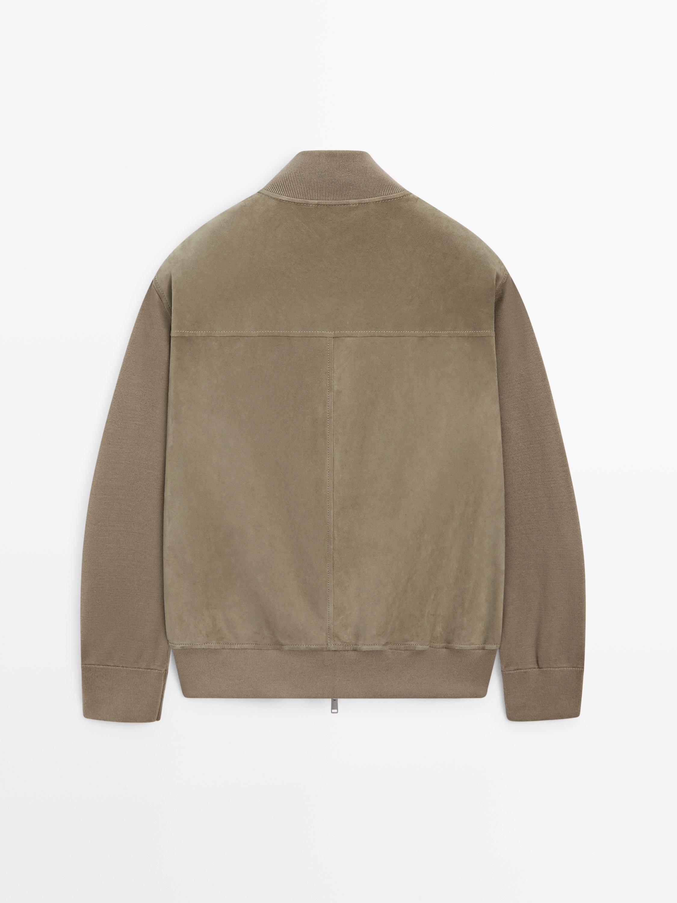 Jaqueta confeccionada amb pell caprina. Màniga llarga. Tancament mitjançant cremallera. Coll alt. Dues butxaques laterals amb tancament de cremallera. Detall de punt.