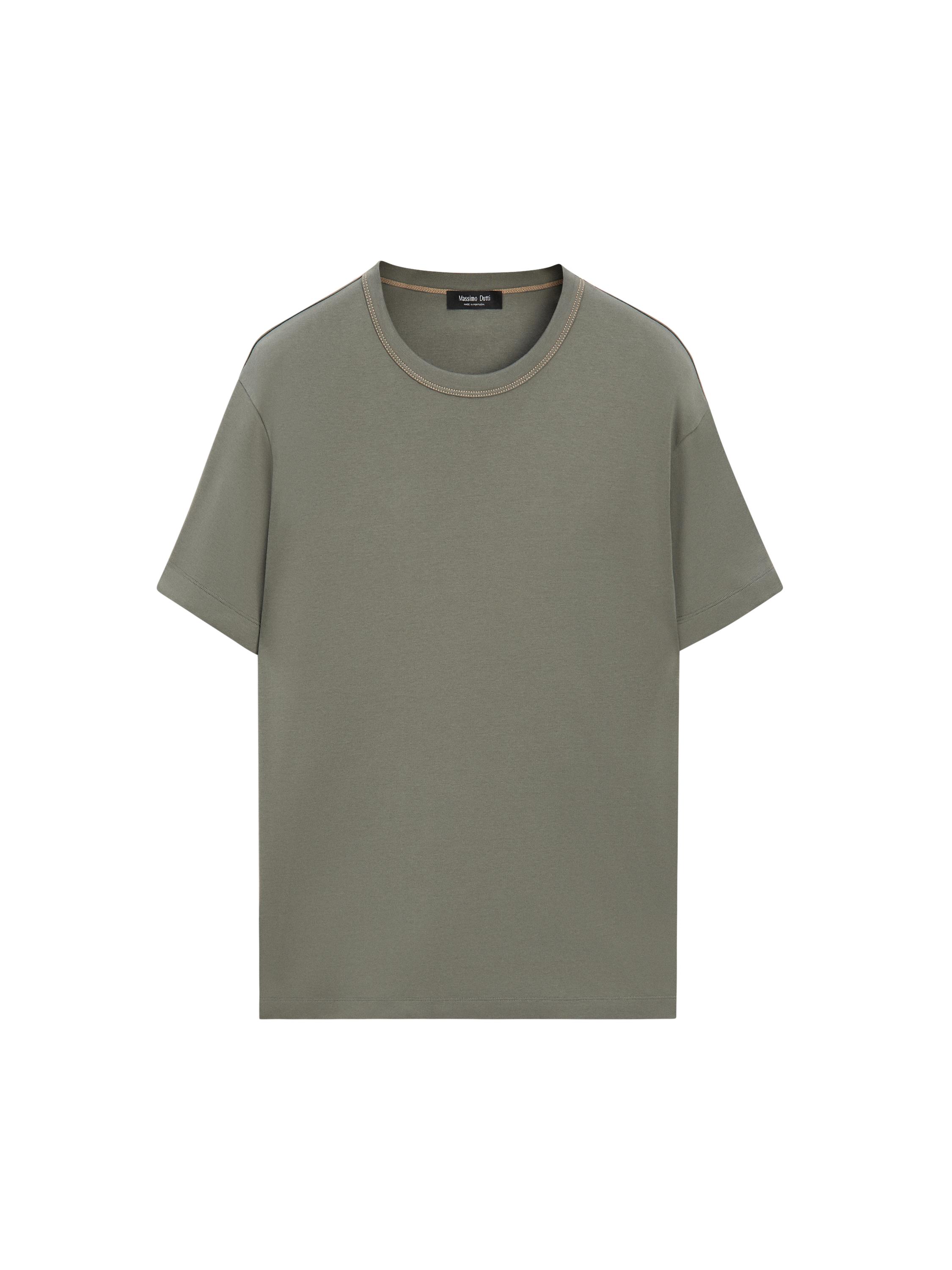 Camiseta confeccionada en tejido algodón. Cuello redondo. Manga corta. Detalle pespunte contraste .