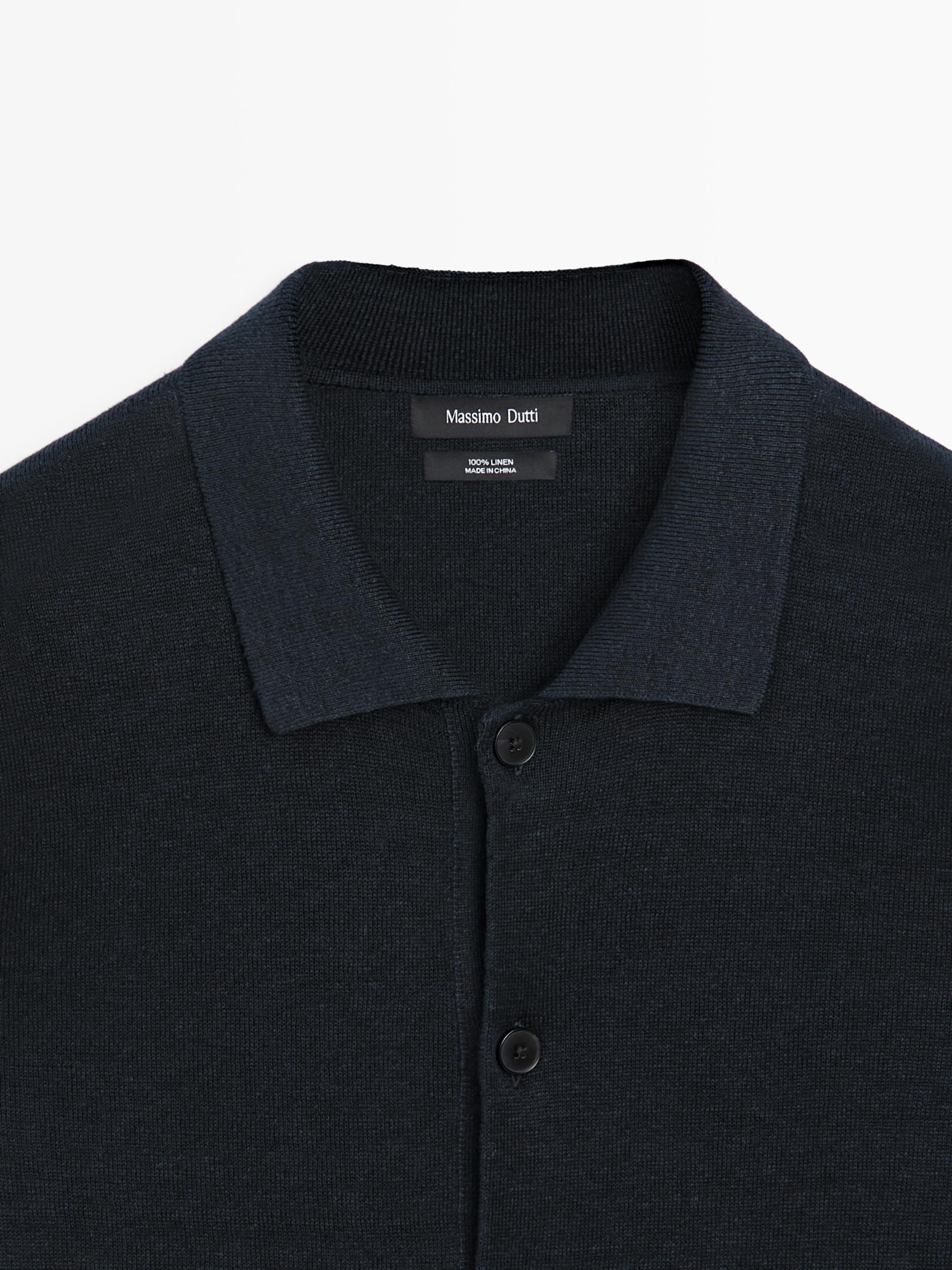 Cárdigan de punto confeccionado en tejido lino. Cuello camisero. Manga larga. Cierre mediante botonadura frontal. Acabados en rib.