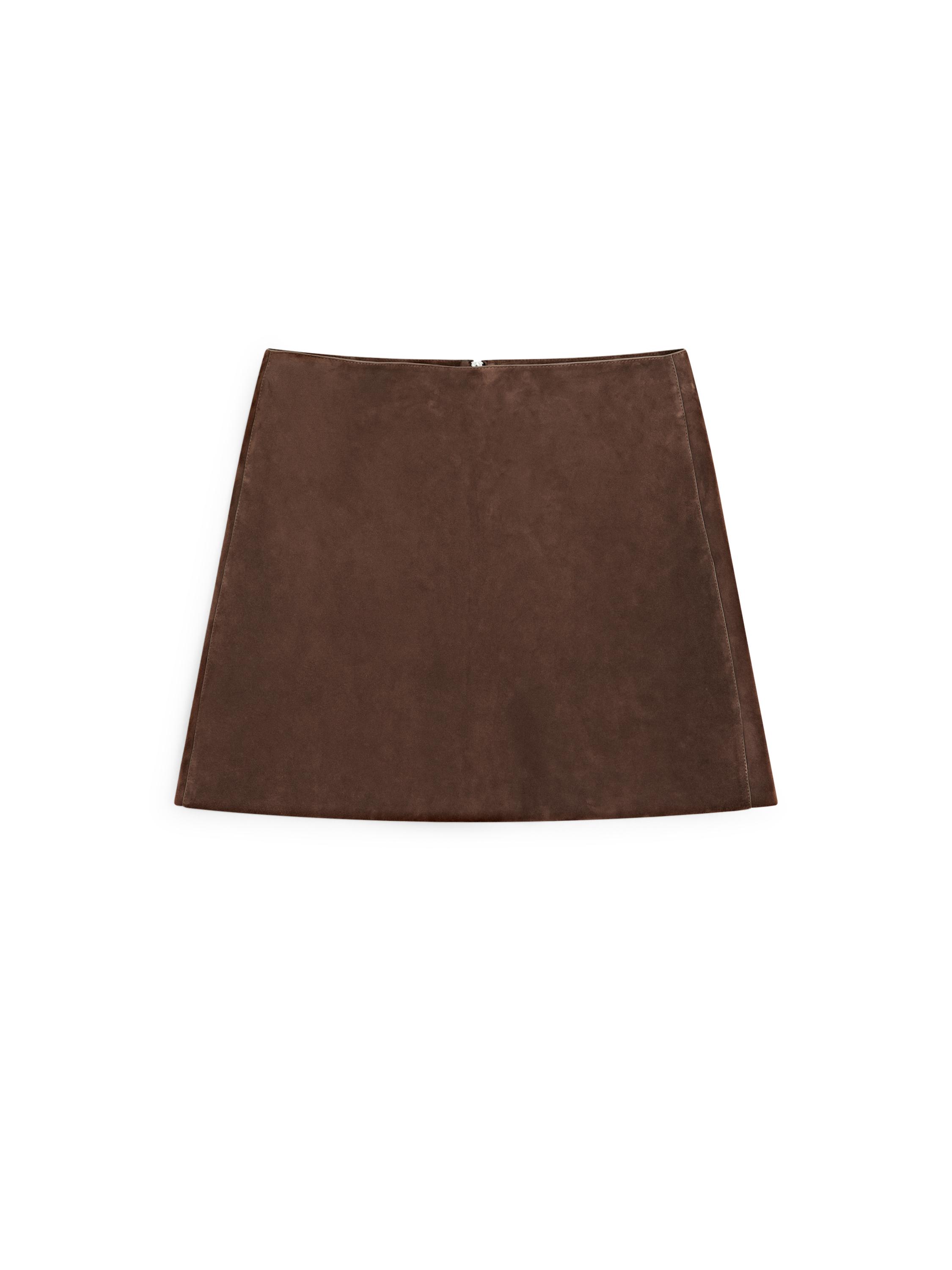Falda mini confeccionado en piel caprina con acabado en ante.
