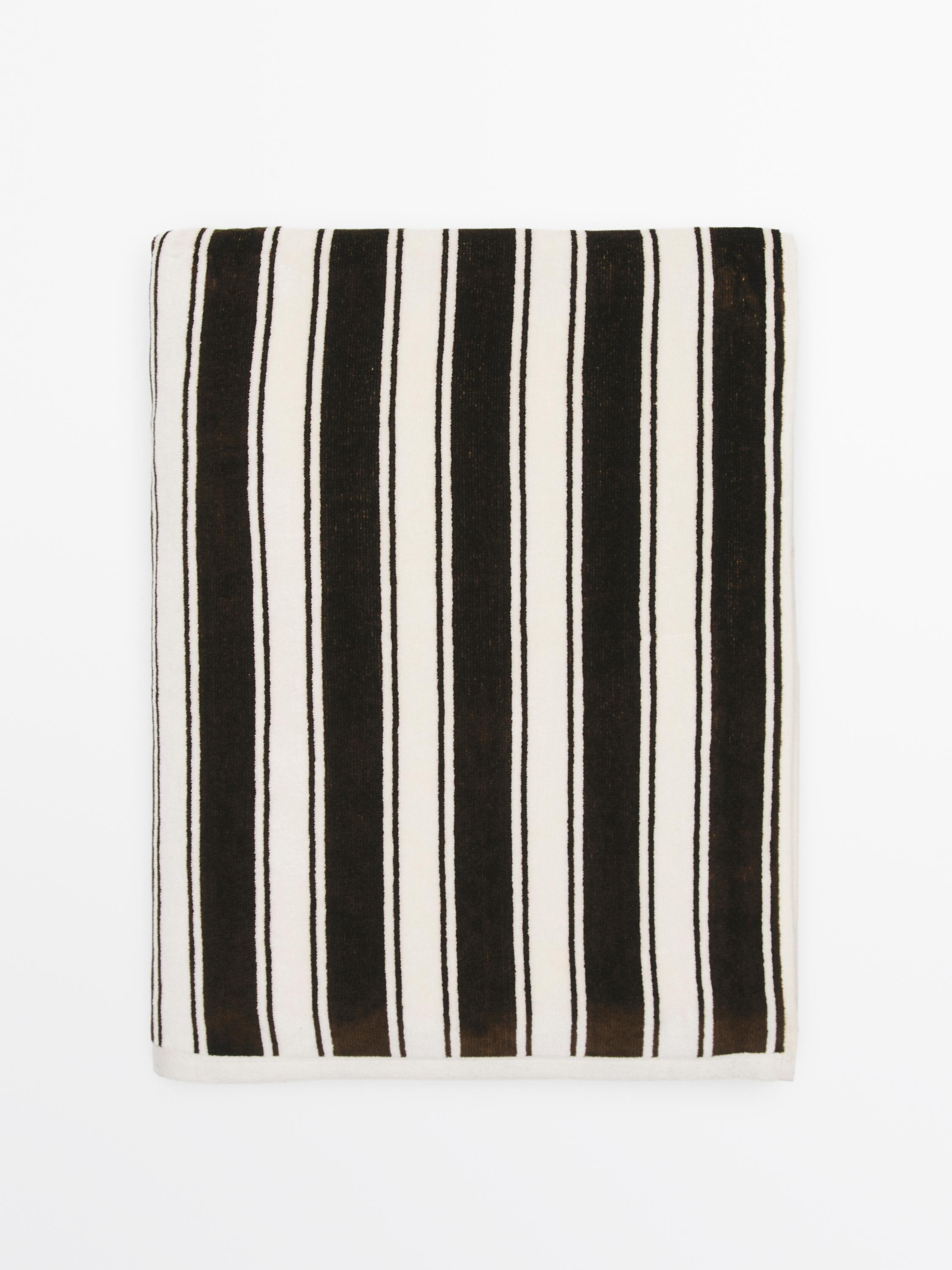 Toalla confeccionada en tecido de algodón. Estampado de raias.