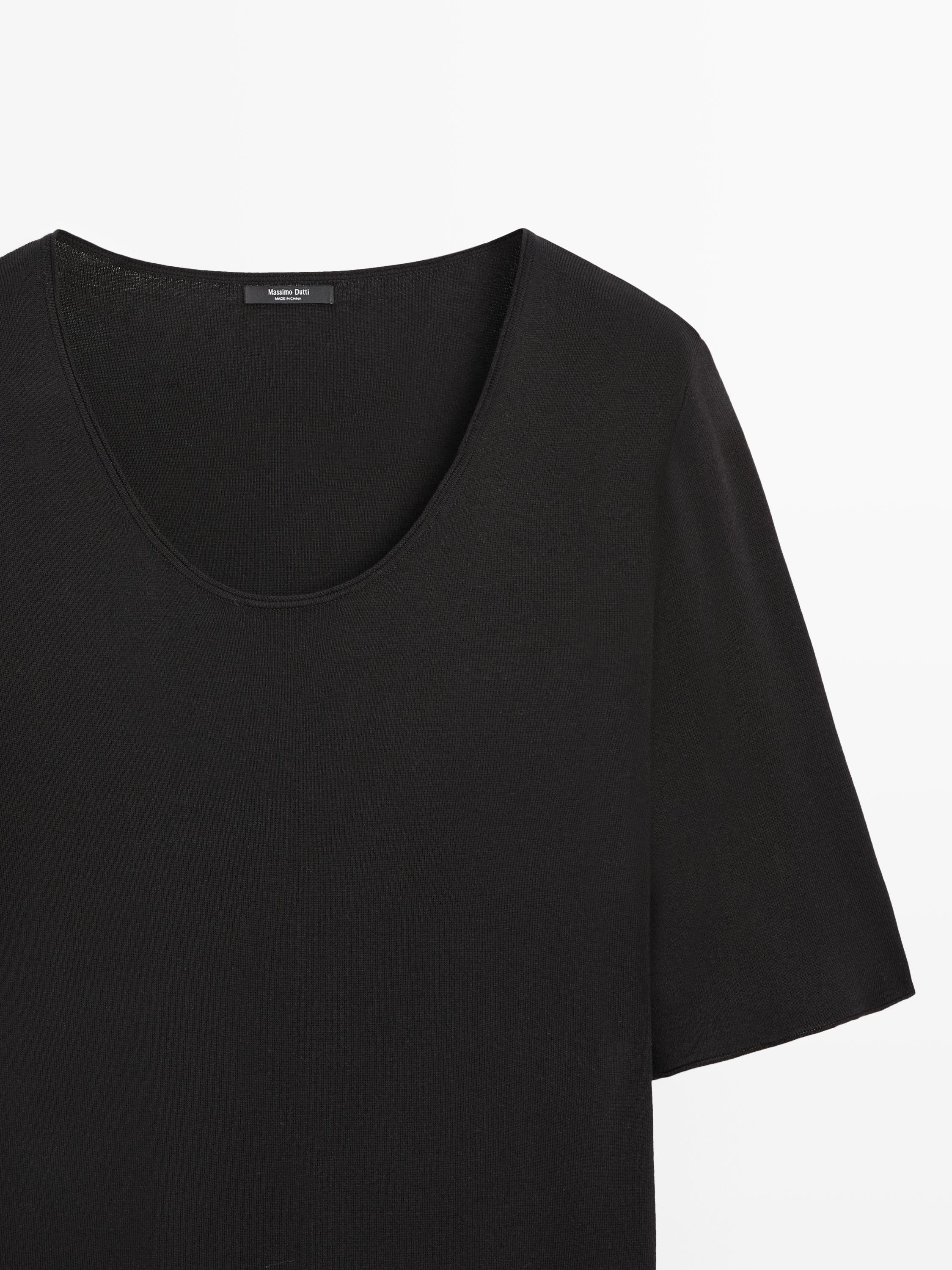 Vestido de corte midi confeccionado con tecido con algodón. Escote redondo. Manga tres cuartos ancha.