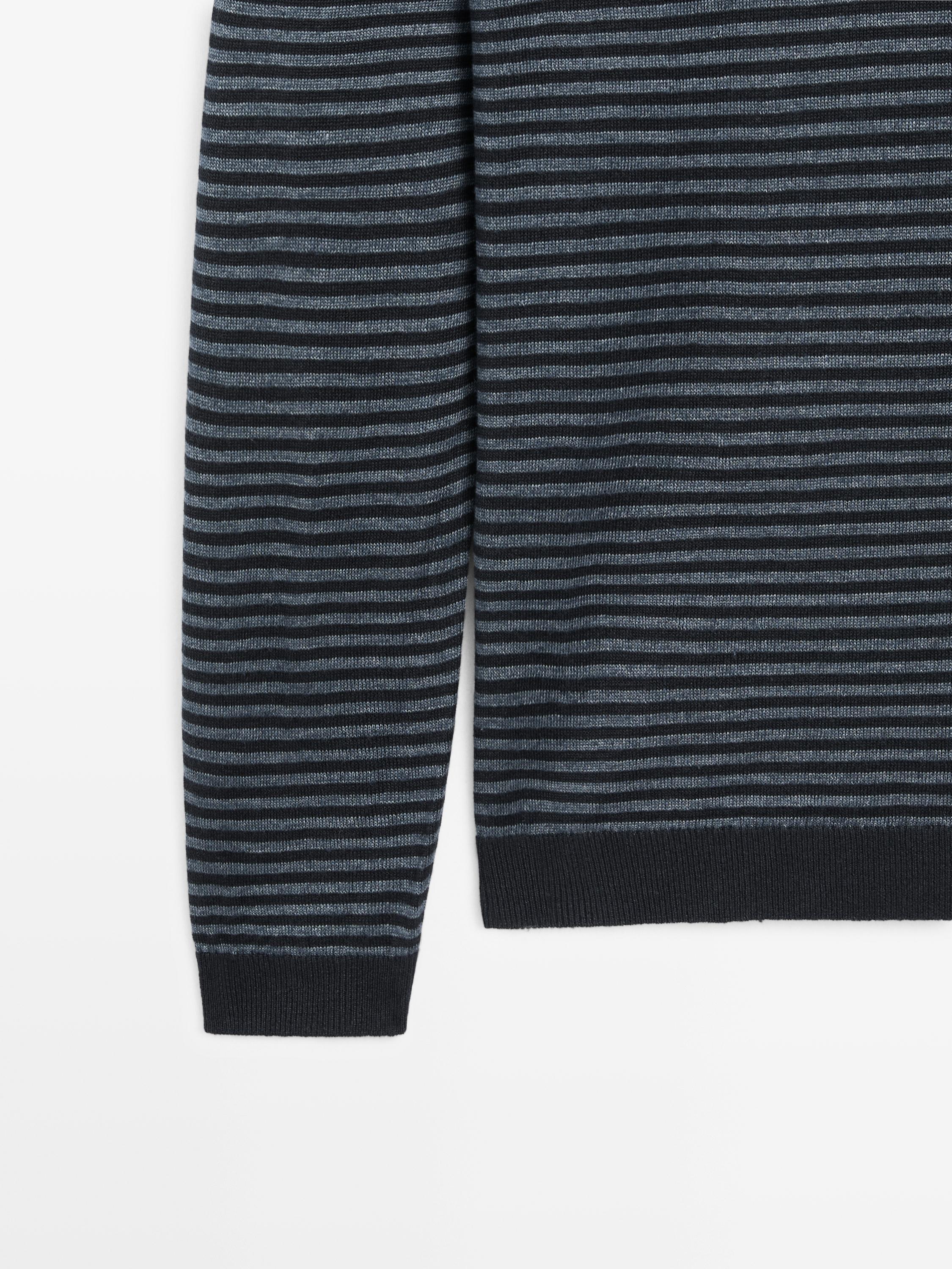 Jersey confeccionado en tejido lino. Cuello redondo. Manga larga. Acabados en rib. Estampado de rayas.