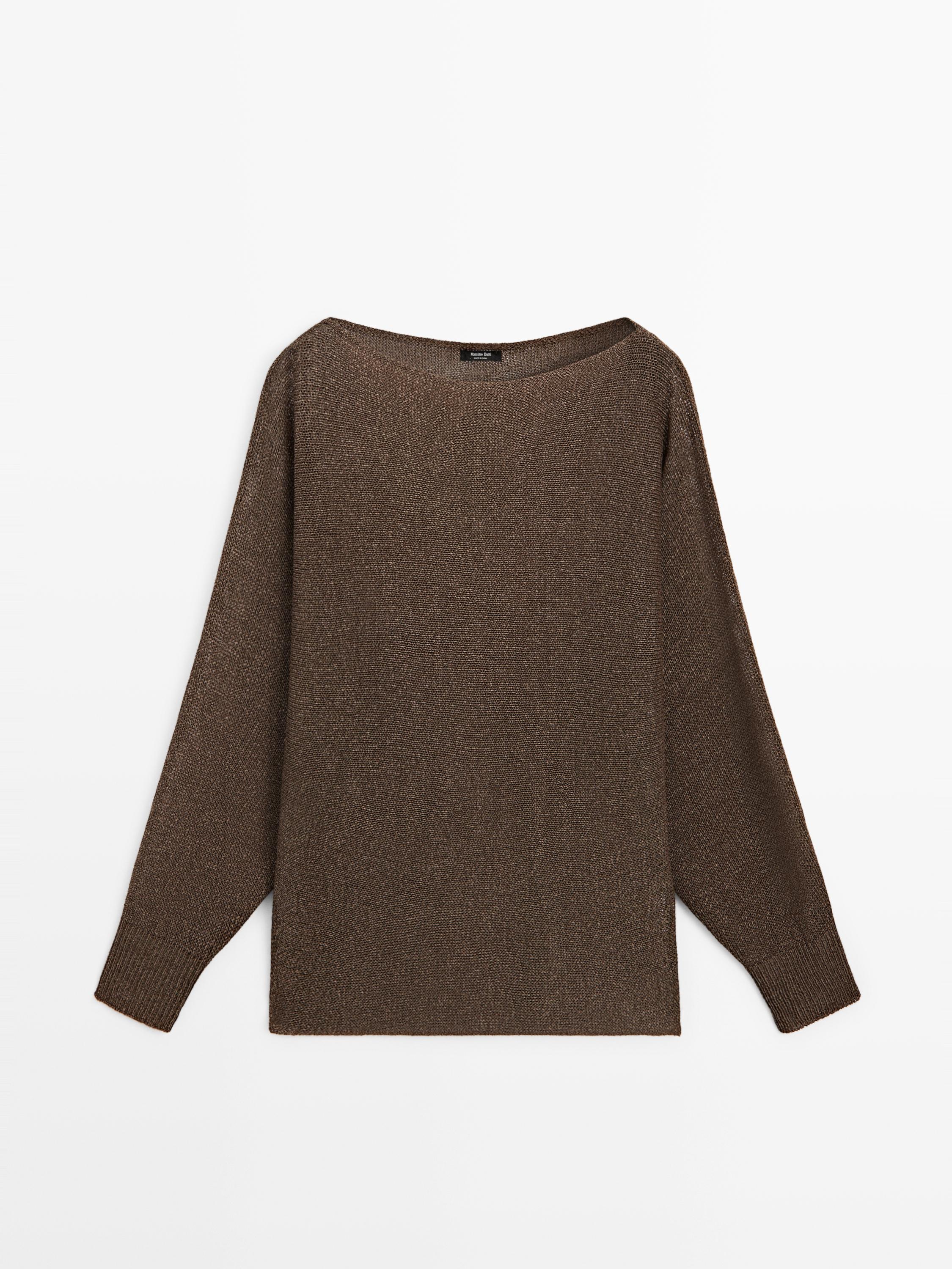 Jersey de punto confeccionado en tejido con algodón. Cuello barco. Manga larga ancha. Detalle de puños en rib .