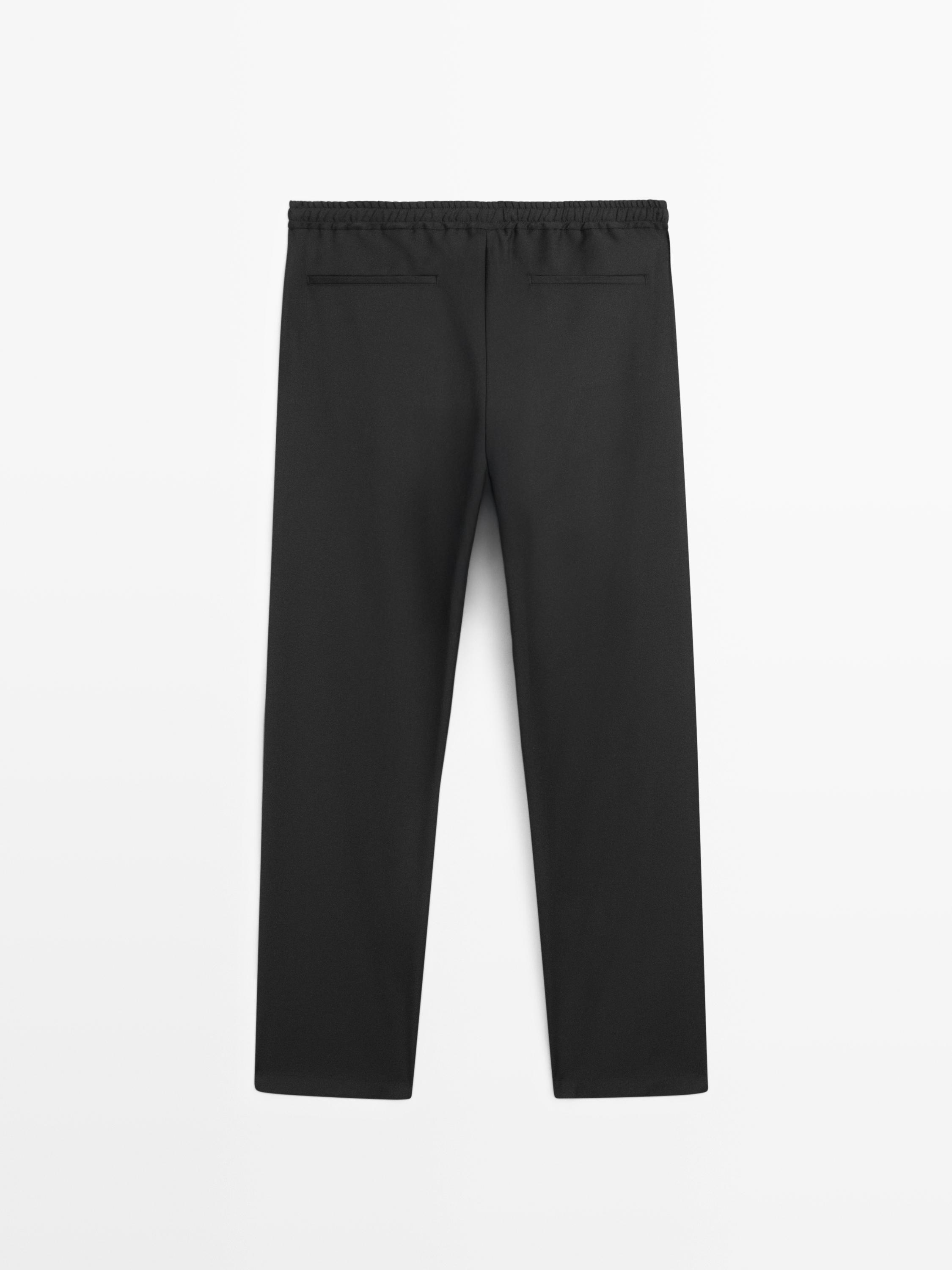 Pantalón confeccionado en tejido principal lana. Cierre frontal por cremallera y botón. Cintura con goma ajustable . Dos bolsillos laterales. Dos bolsillos de ojal en la parte posterior.