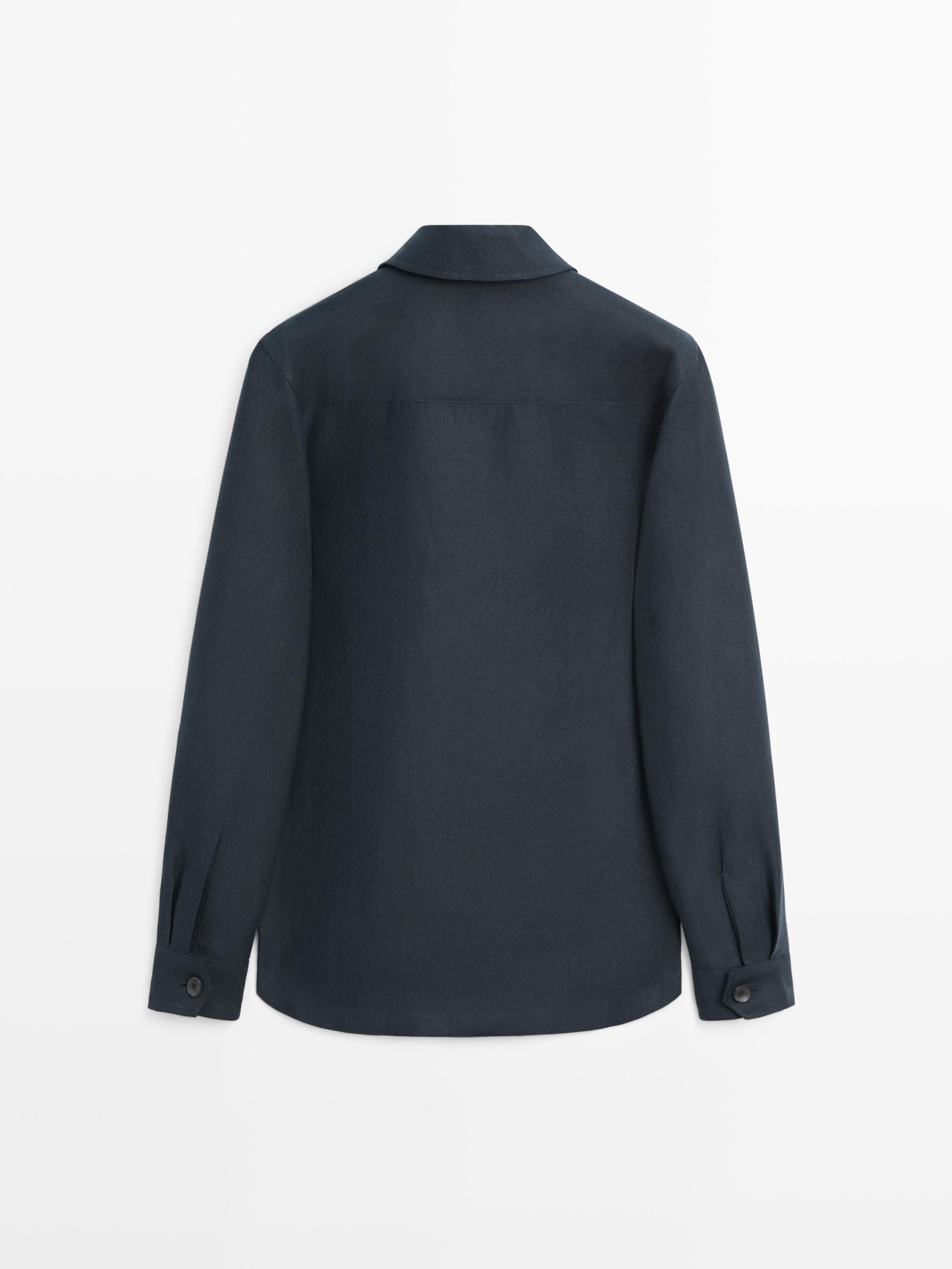 Sobrecamisa confeccionada con tejido lino. Cuello con solapa de muesca. Manga larga con puño abotonado. Cierre mediante botonadura frontal. Tres bolsillos de parche.
