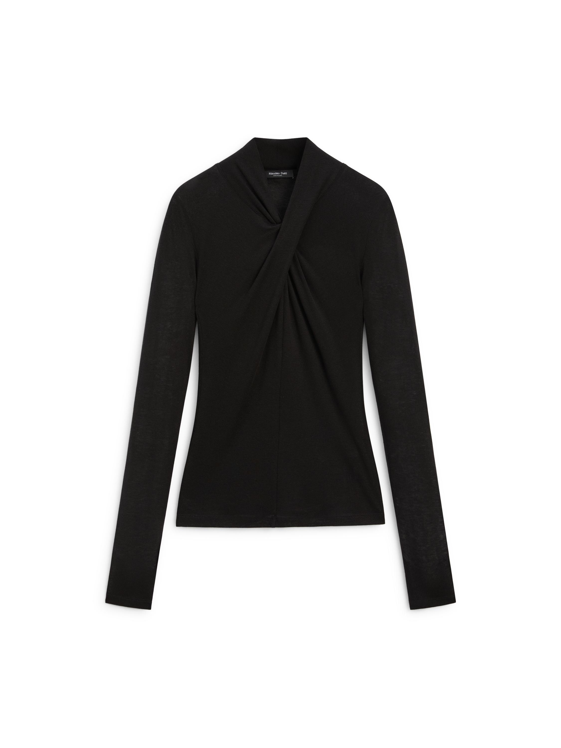 Top con escote cruzado en pico. Silueta ligeramente ajustada al cuerpo, proporcionando un aspecto más definido y estilizado. Manga larga. Tejido suave y agradable al tacto. Tejido fino y ligero.