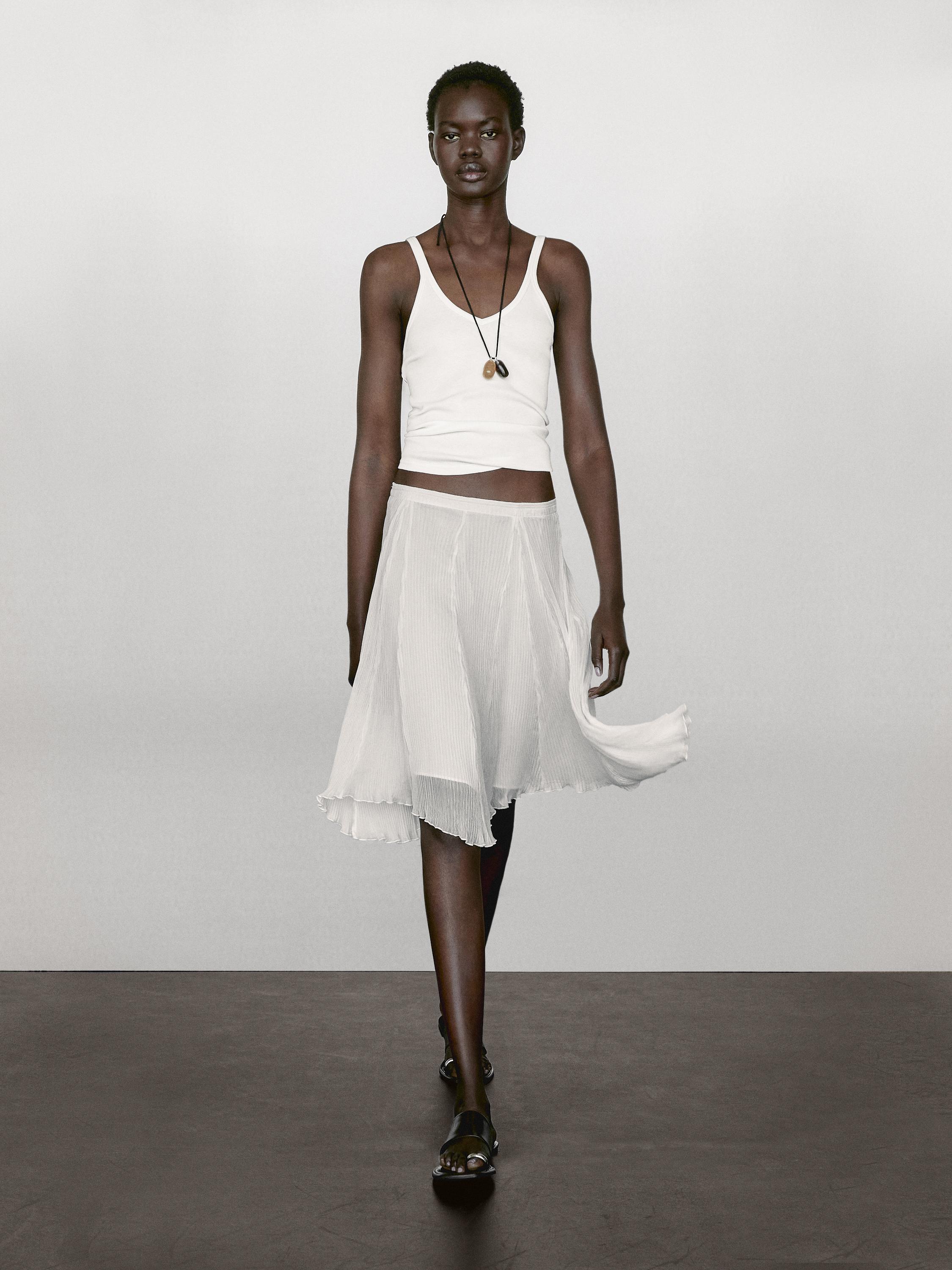 Top tirantes finos. Escote en forma de pico. Tejido de punto rib.