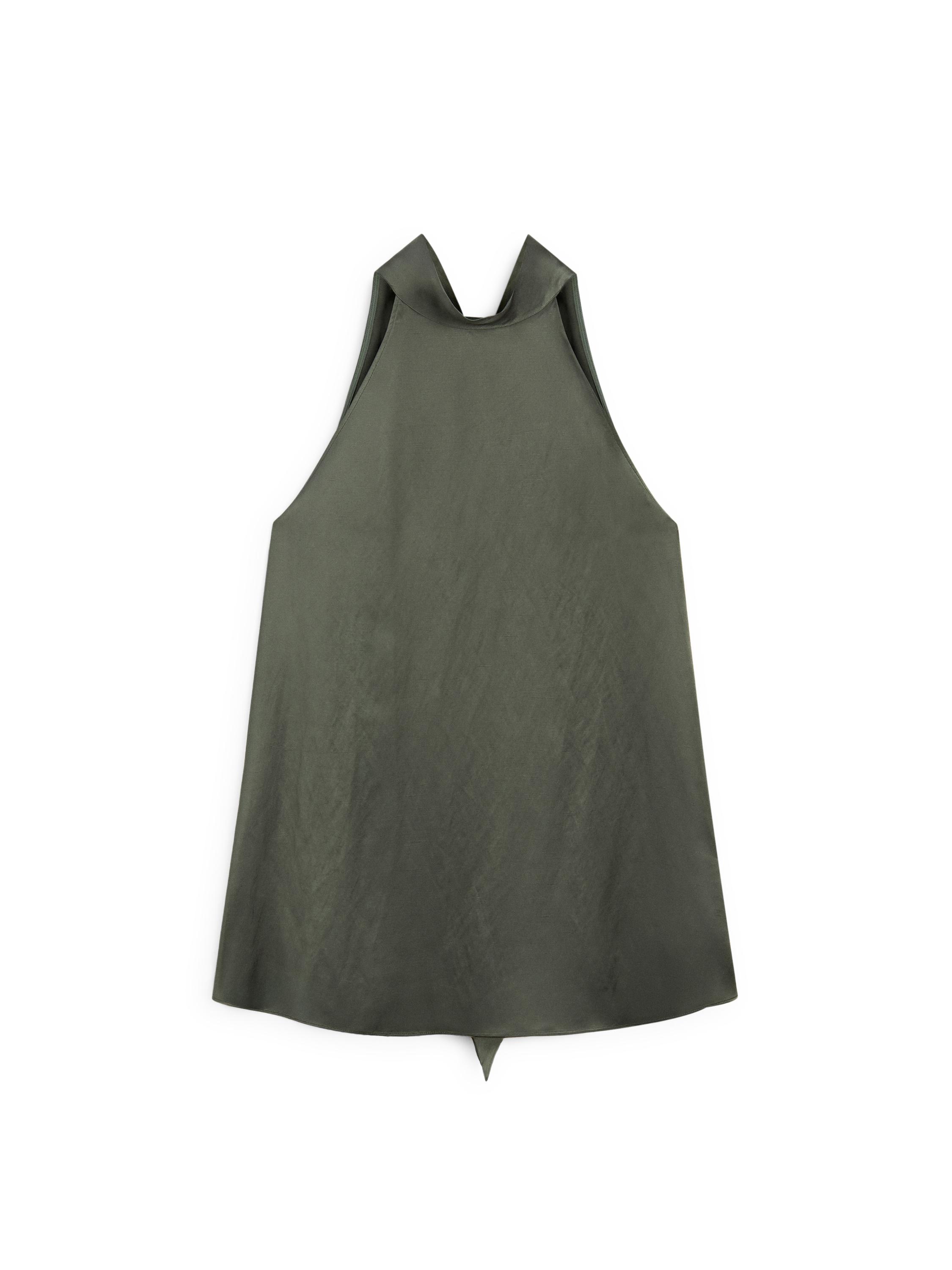 Top cuello halter. Cuello con detalle de lazada. Tejido fluido de acabado satinado.